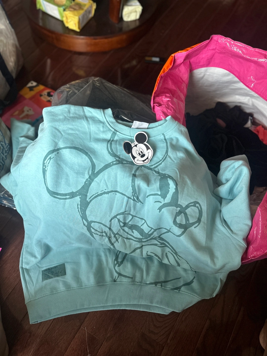 Here's a brand new Disney Mickey Mouse sweatshirt in size XL! It's a light blue colour with a Mickey Mouse graphic on the front. Size XL, however I think it can fit an xxl to 1x fine. Purchased from PRIMARK in 🇺🇸