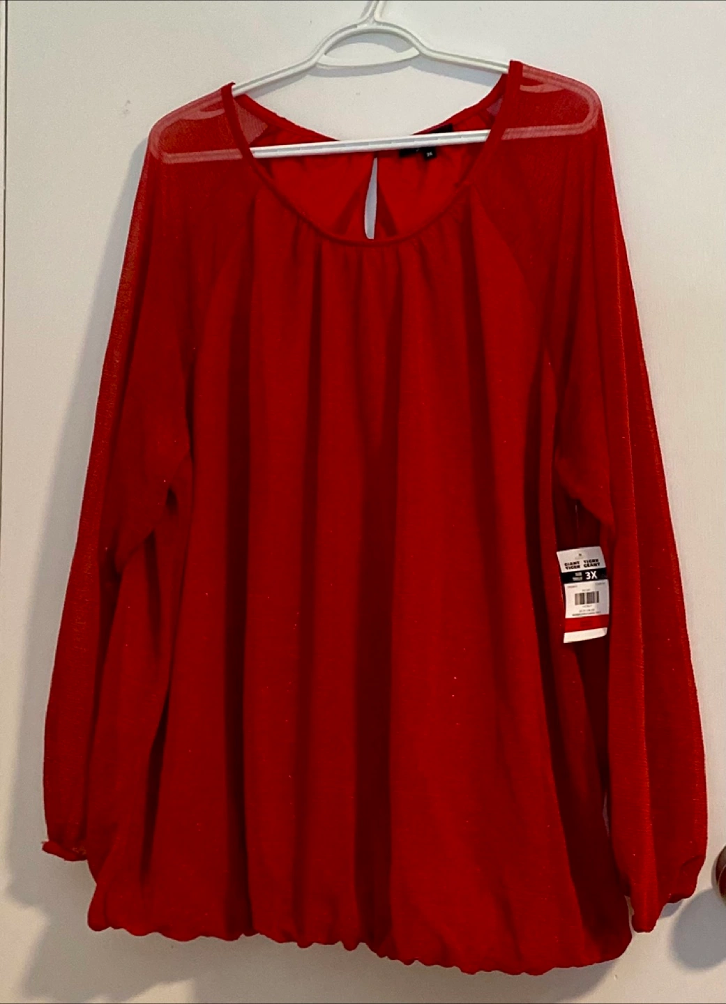 A lovely red blouse from Lily Morgan in size 3X! It's made with 100% polyester for both the body and the lining, making it a comfy and stylish choice for any occasion Smoke free and pet friendly environment. Porch pick up and public meet up available. Downtown Burlington near New Street and Martha St