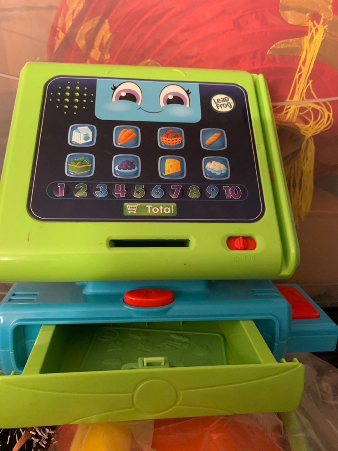 This LeapFrog Count Along Cash Register is ready for a new home! It's a fun and educational toy that helps kids learn about numbers and counting. Your little one will love scanning items and making transactions