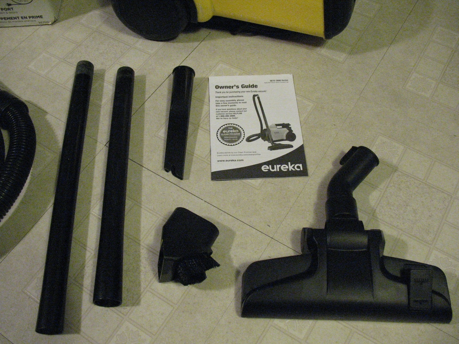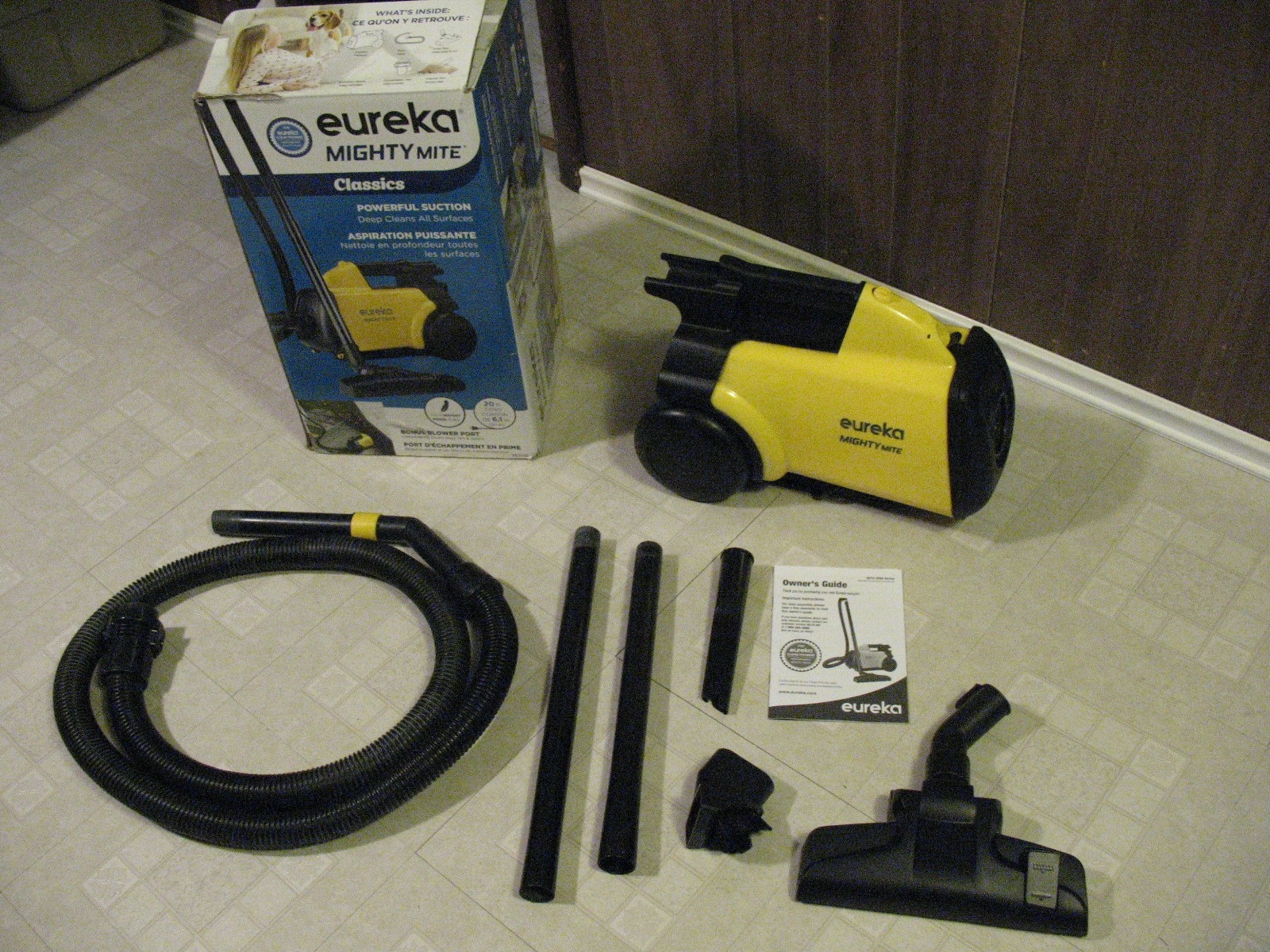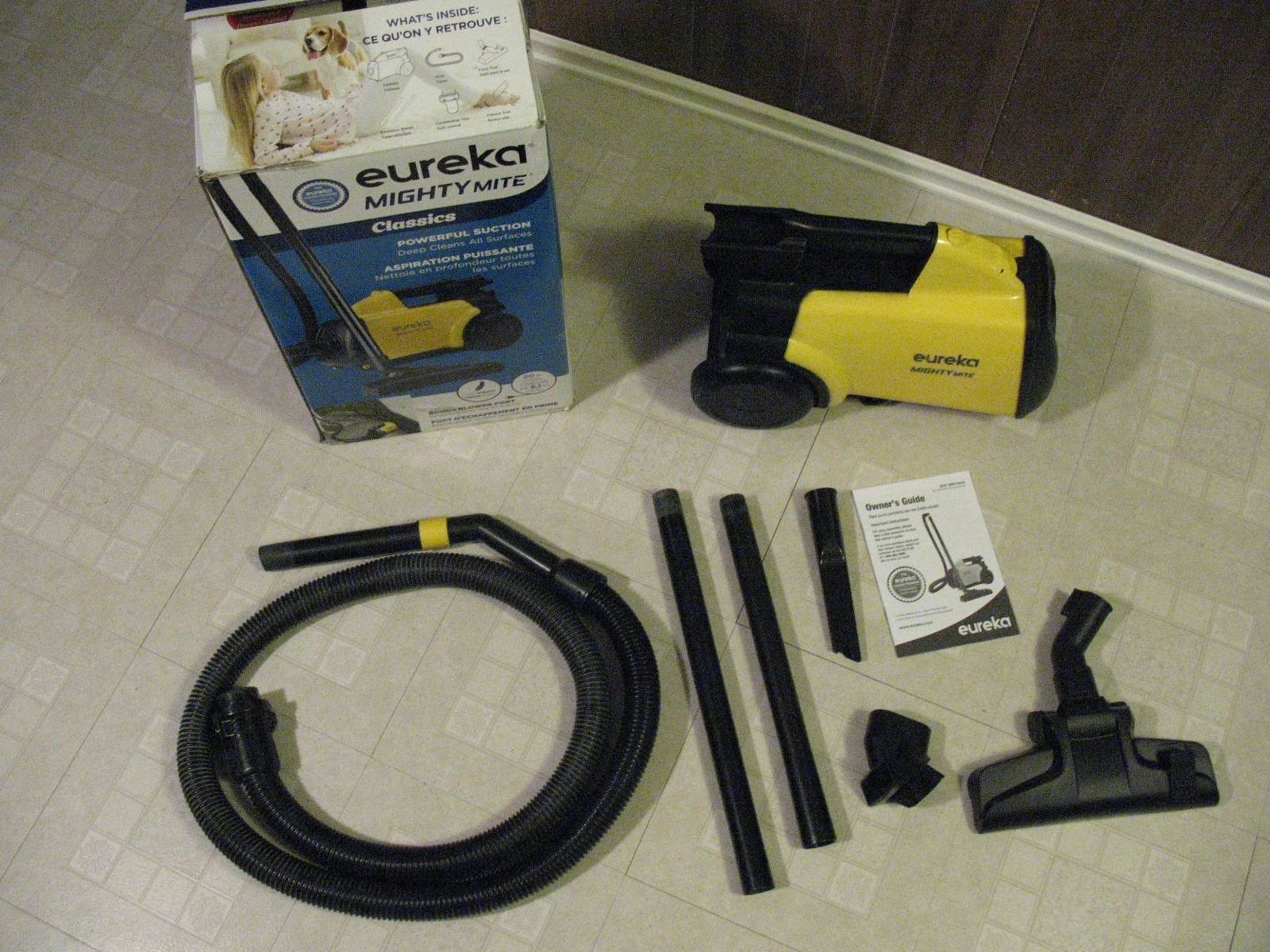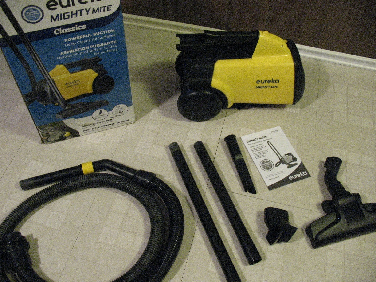 EUREKA Mighty Mite Canister Vacuum Cleaner, LIKE NEW FEATURES; * Lightweight vacuum cleaner allows you to carry it around the whole house * 1200 watts * Ideal for :Carpet, Stair, Upholstery, Car, Hardwood Floors * 12-amp motor, it creates powerful suction for deep and efficient clean * Compact-size allows you to store into the cabinet easily without taking too much space * 20-foot cord and long extension wand assist the vacuum to clean the entire room, long hallway or set of stairs without changing the socket frequently. * Featuring a blower port, you can blow leaves in the yard and debris in the corner efficiently. * includes 2 extension wands and 3 specialty attachments, this vacuum can easily dust furniture, reach high ceilings, get under car seats and in crevices and corners where traditional upright vacuums can’t reach. $80 647 709-6005