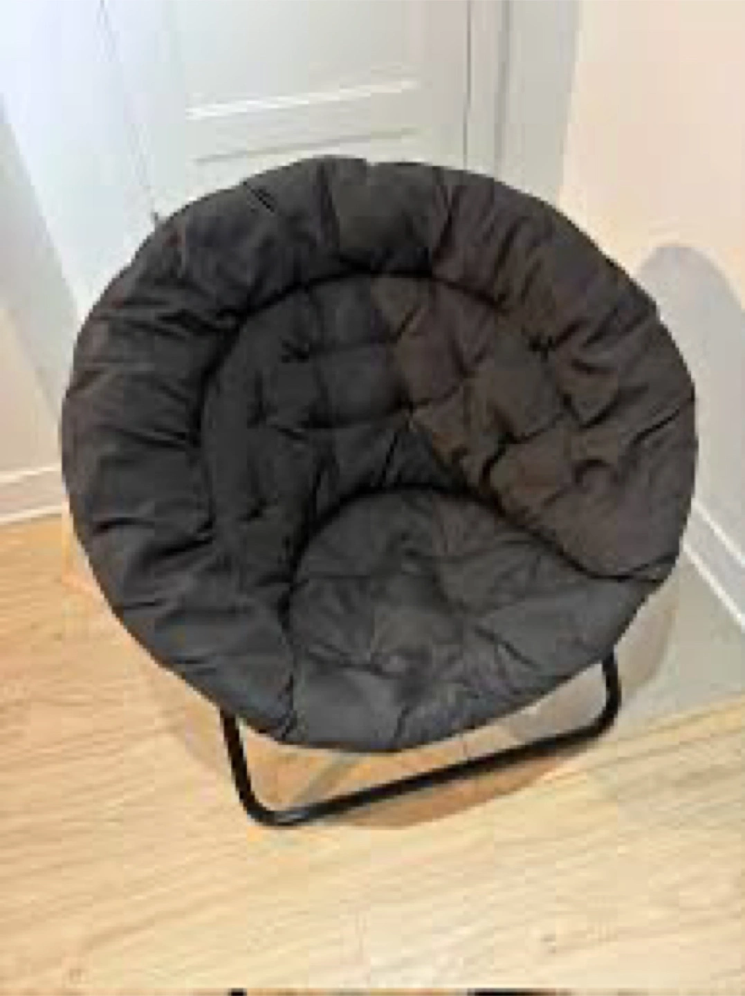 2 comfy black chairs looking for a new home! It's in great shape and perfect for adding a cozy touch to any room. The cushion is nice and plush, making it a great spot to curl up with a book or just relax after a long day. 40 each. Sold together or separately