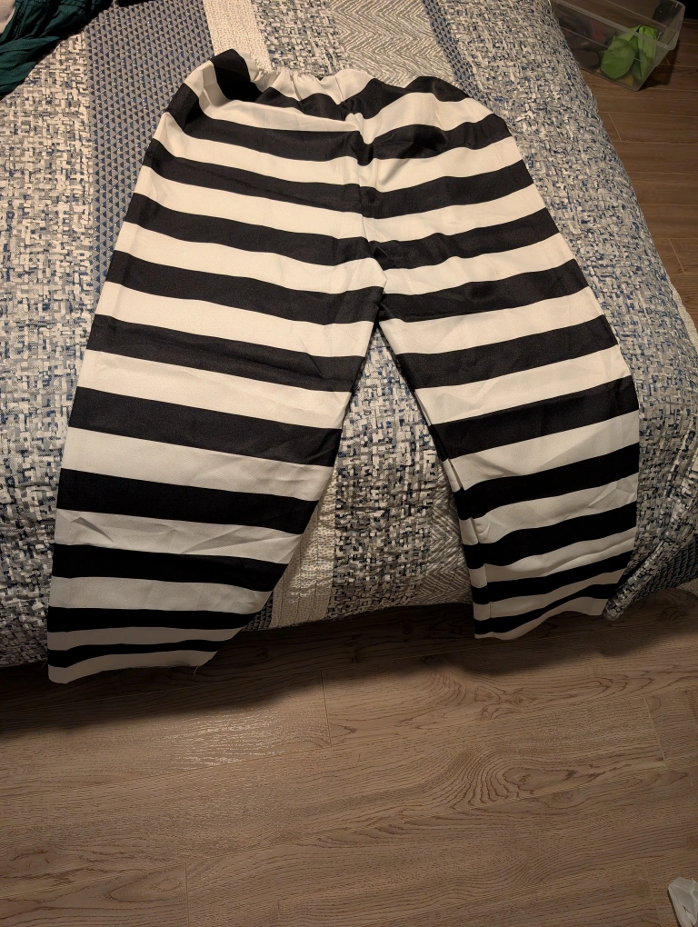 Selling a striped prisoner costume, perfect for Halloween or a costume party! The costume includes a top and pants with black and white stripes. There is a number '842831' on the top.