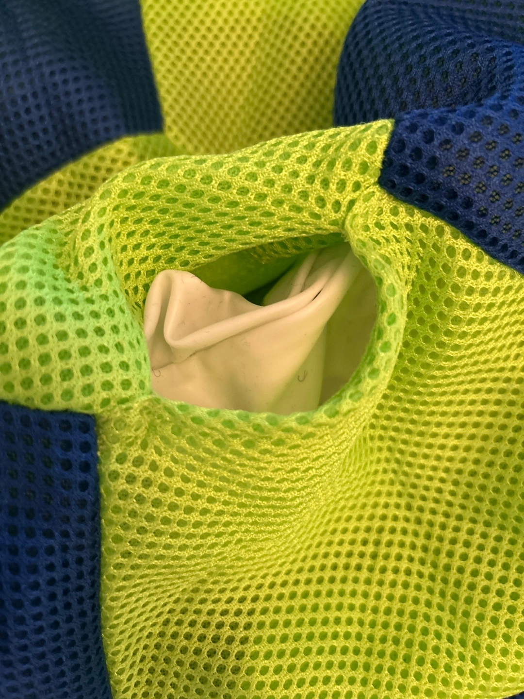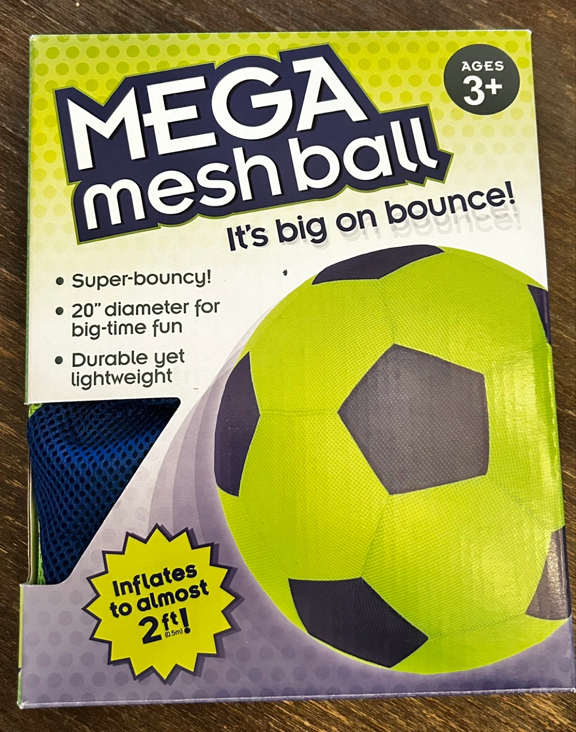 This Mega Mesh Ball is perfect for some backyard fun! It's super bouncy and lightweight, making it easy to kick, catch, and throw around. It's 20" in diameter and inflates easily with a standard sport ball pump and cone adapter (not included). It also has a surface washable design for easy storage and cleaning! Recommended for ages 3+