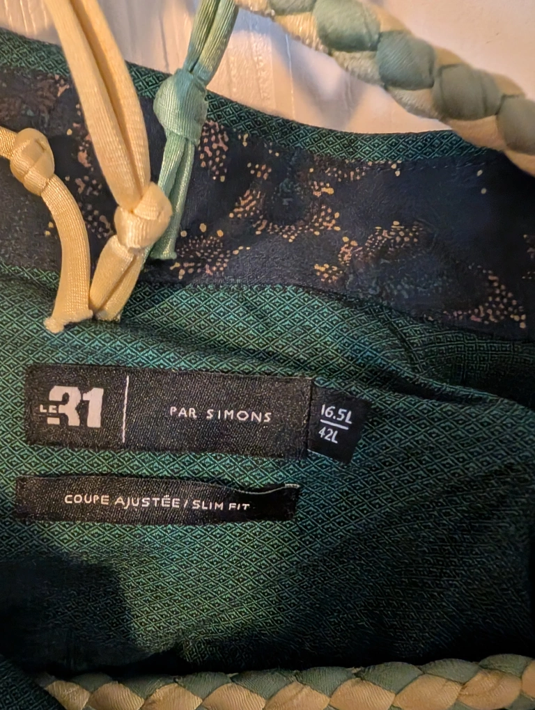 Selling a Le 31 Par Simons green slim fit shirt in size 16.5L (42L). It's in great condition and ready for a new home!