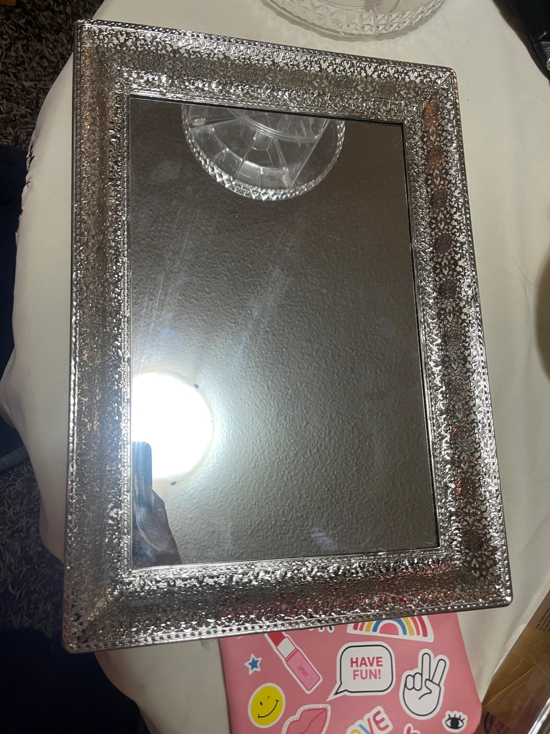 Selling a silver framed mirror! It's in good condition and would look great in any room. The frame has a nice decorative pattern. Perfect for adding a touch of elegance to your space