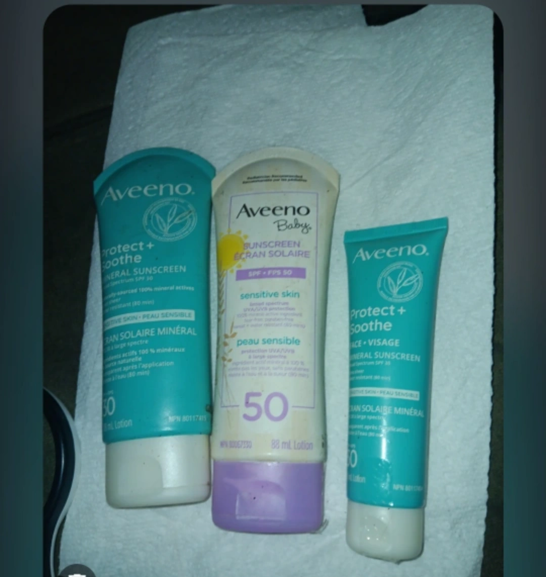 Selling a few Aveeno sunscreen lotions. asking $ 5 Each 647-203-0411 Don Mills Rd and Sheppard Avenue East area Surrounded by highways 401 404 and the DVP Just south of Fairview mall and TTC station Don Mills Shipping and Delivery is an option for an extra cost depending on where you live Stay Safe God Bless