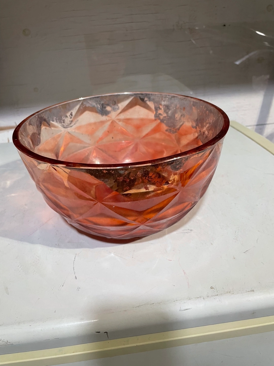 Selling a stylish red glass bowl planter. It's perfect for adding a touch of colour to your home decor. The bowl features a unique geometric pattern that catches the light beautifully. It would be great for serving center succulents or as a decorative piece!