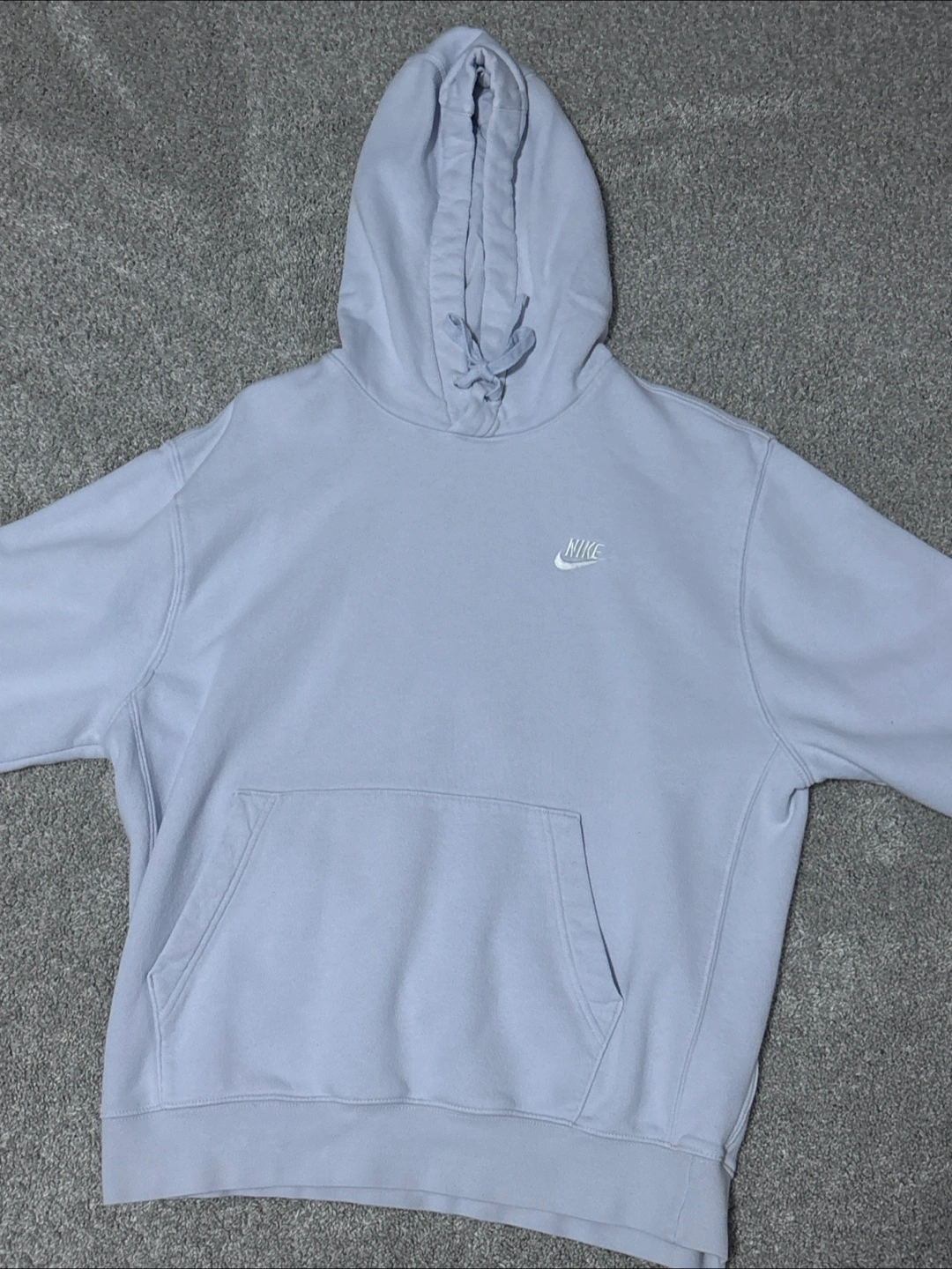 Selling a comfy Nike pullover hoodie in a nice light blue colour. It's in great condition and ready for a new home!