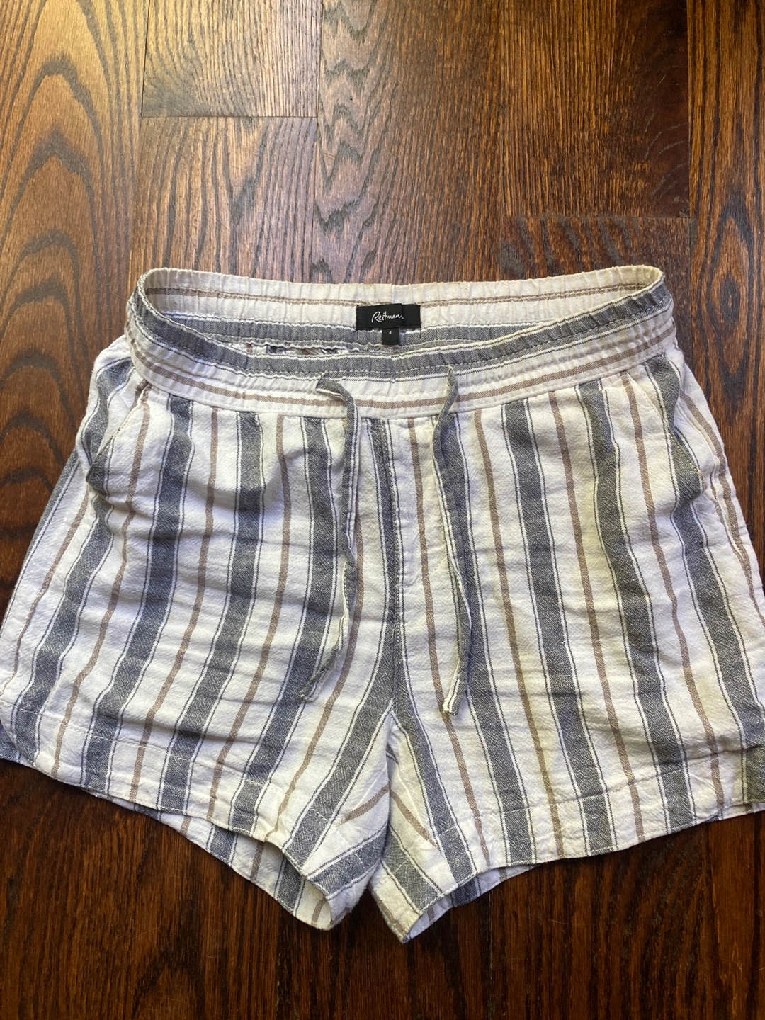 Reitmans size 4 linen blend women’s striped shorts with drawstring. Very cute! 55% linen, 45% viscose. *Cash only, please*
