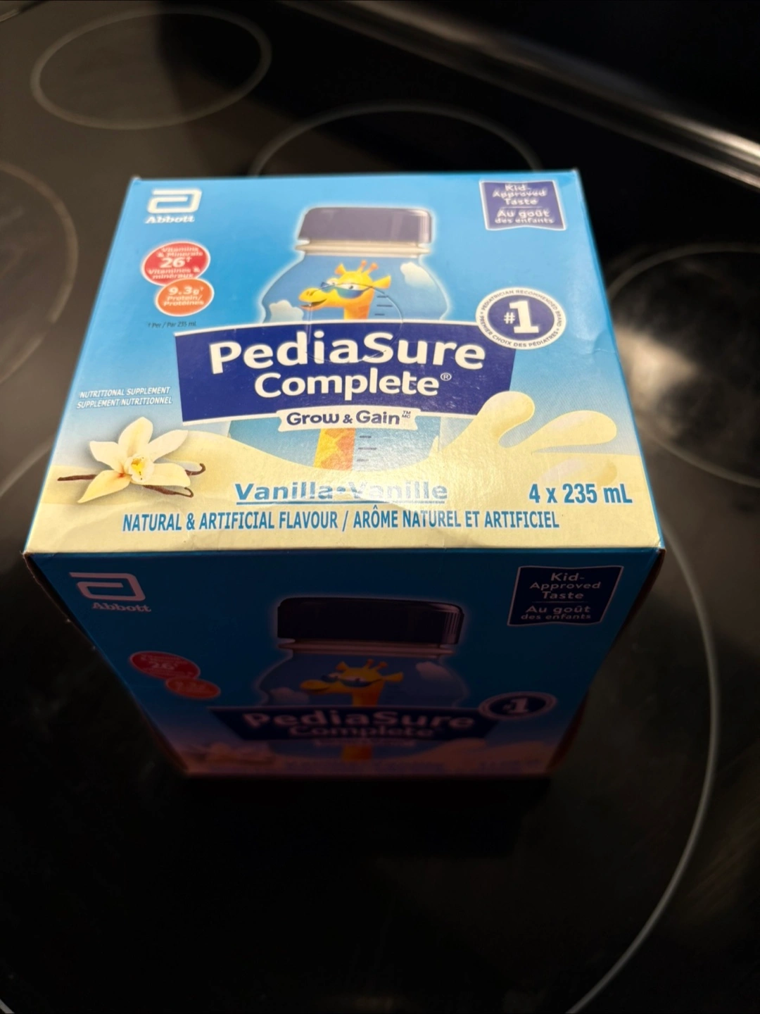 Selling a pack of PediaSure Complete Grow & Gain in Vanilla flavour! Each pack contains 4 bottles, each 235 mL. Perfect for supplementing your little one's nutrition. Expiry Date is 2026 June 01 4 boxes in 25$ Nepean. Greenbank and Baseline