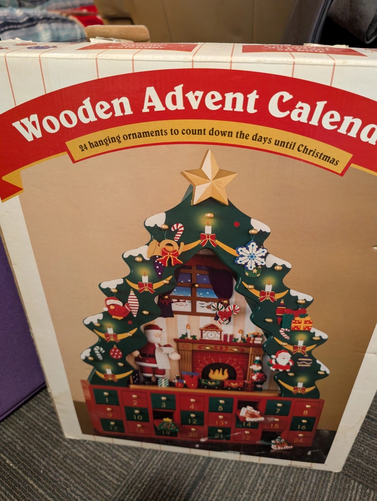 I'm selling a wooden advent calendar with 24 hanging ornaments to count down the days until Christmas! It's a charming way to celebrate the holiday season