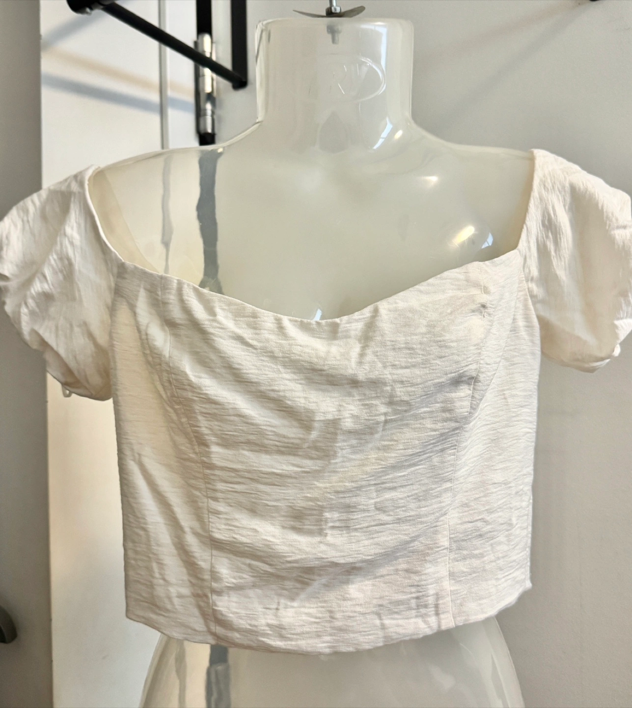 Cream-coloured off-shoulder crop top from Dynamite! It's a size Small. In great condition!