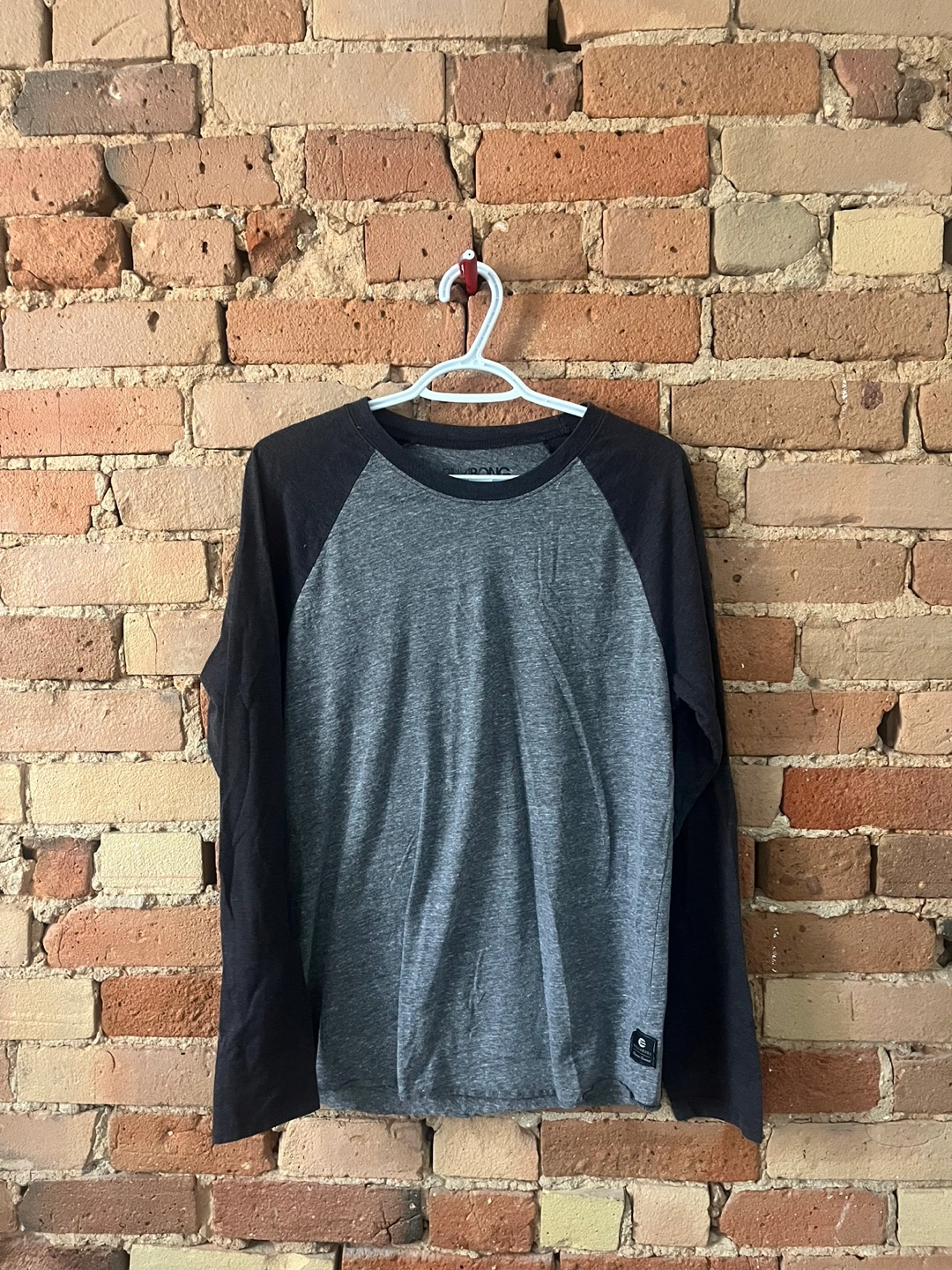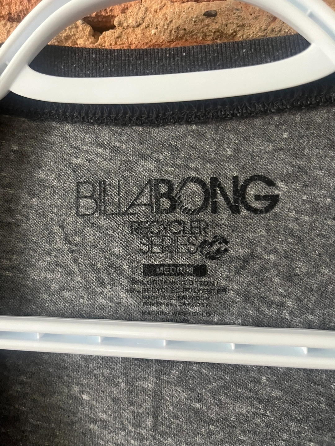 Billabong Recycler Series raglan shirt. It's a medium size and features a grey body with black sleeves.