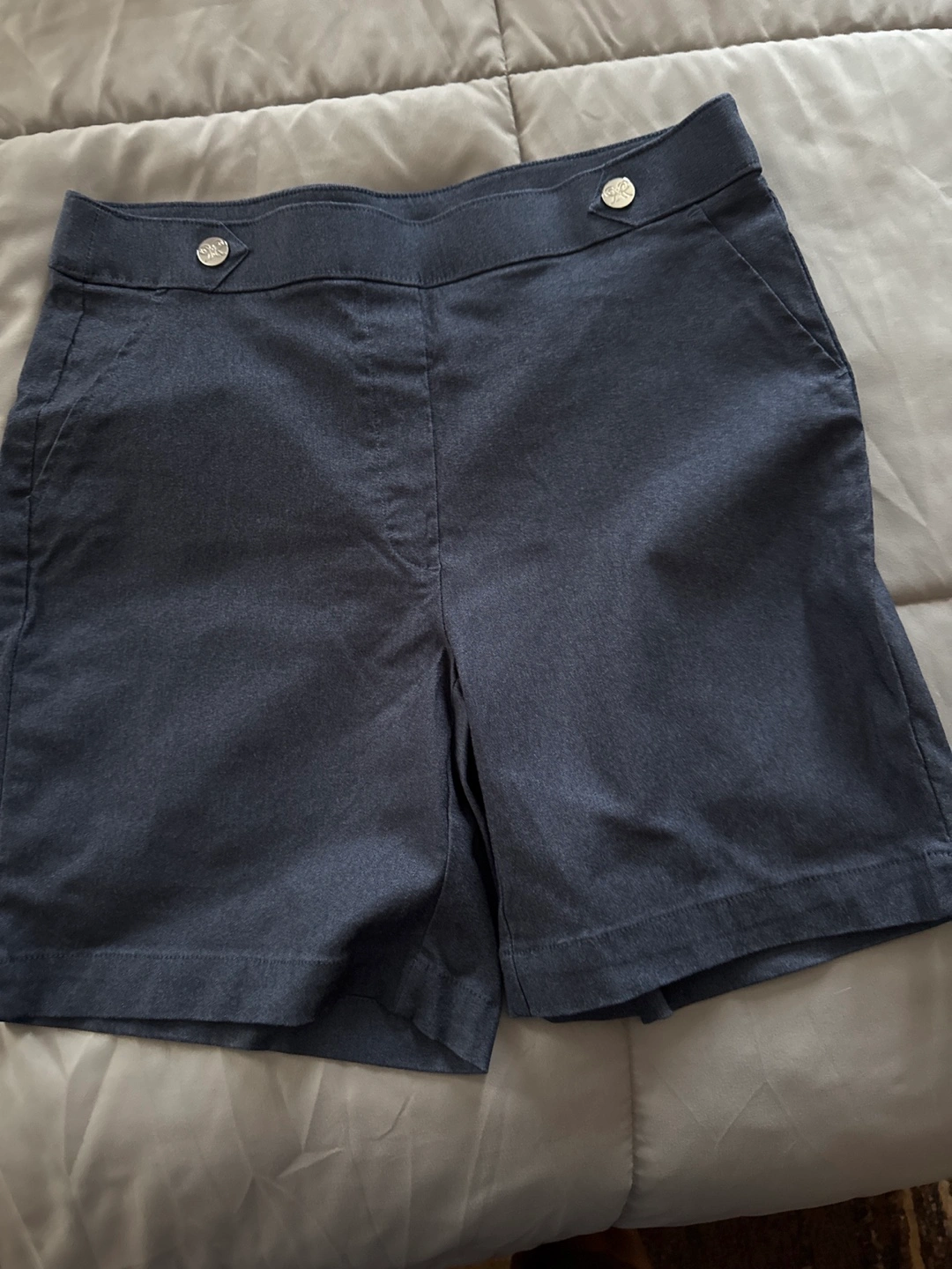 These are Raphaella shorts in black., and a pair of blue They appear to be in great condition and are a stylish addition to any wardrobe! New