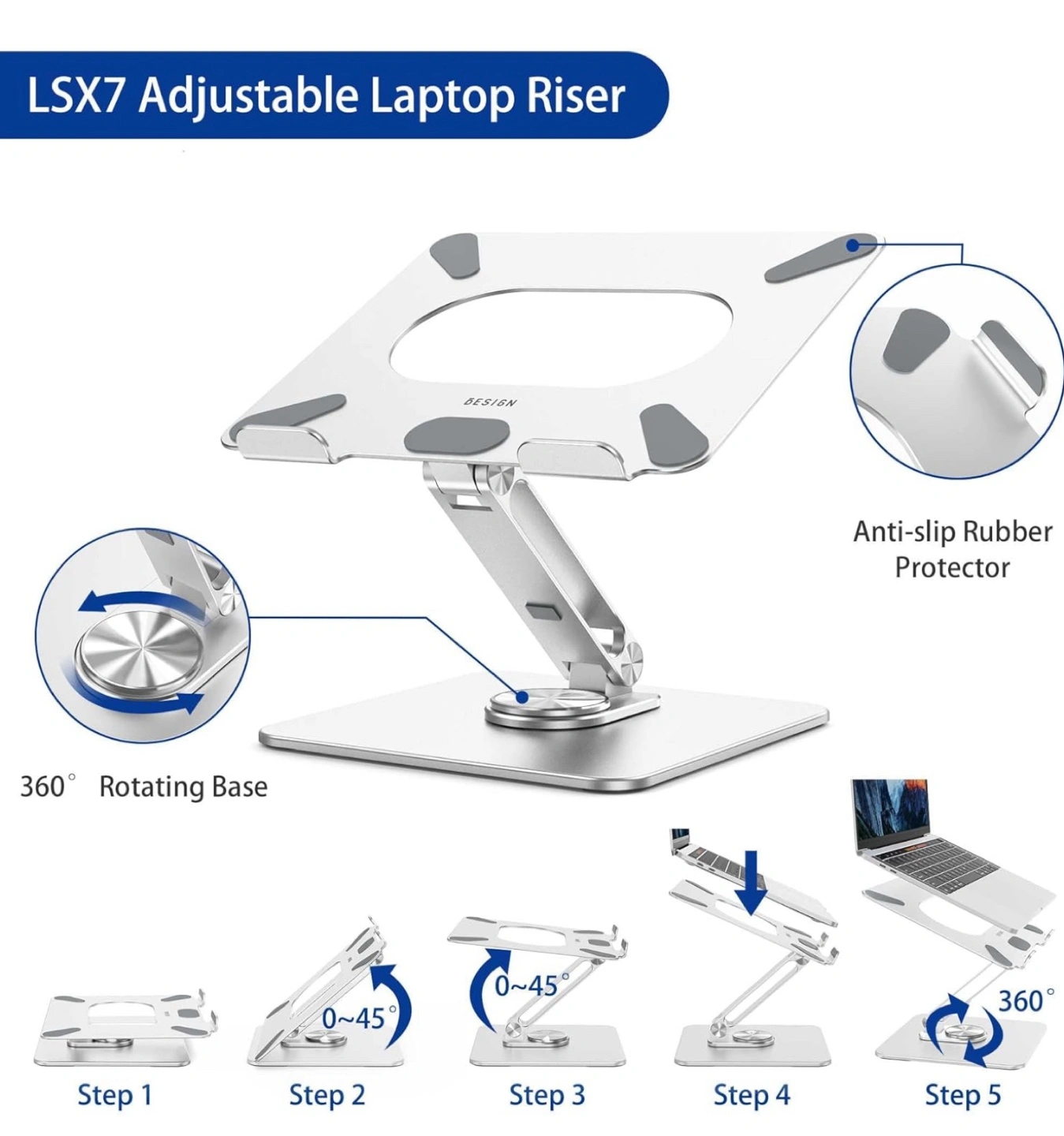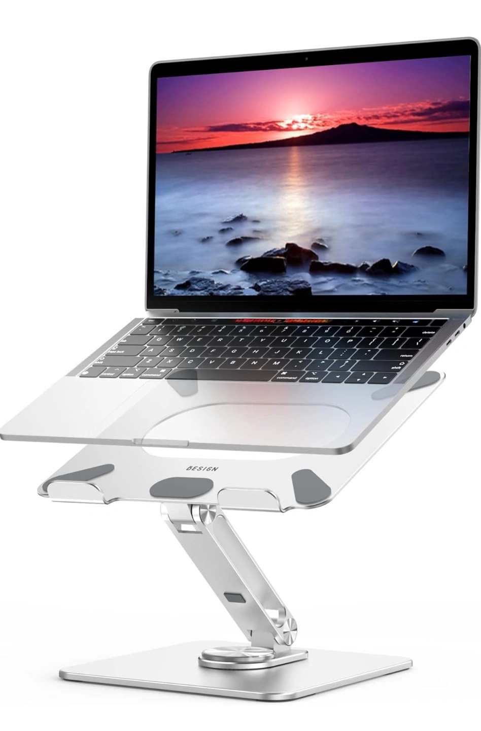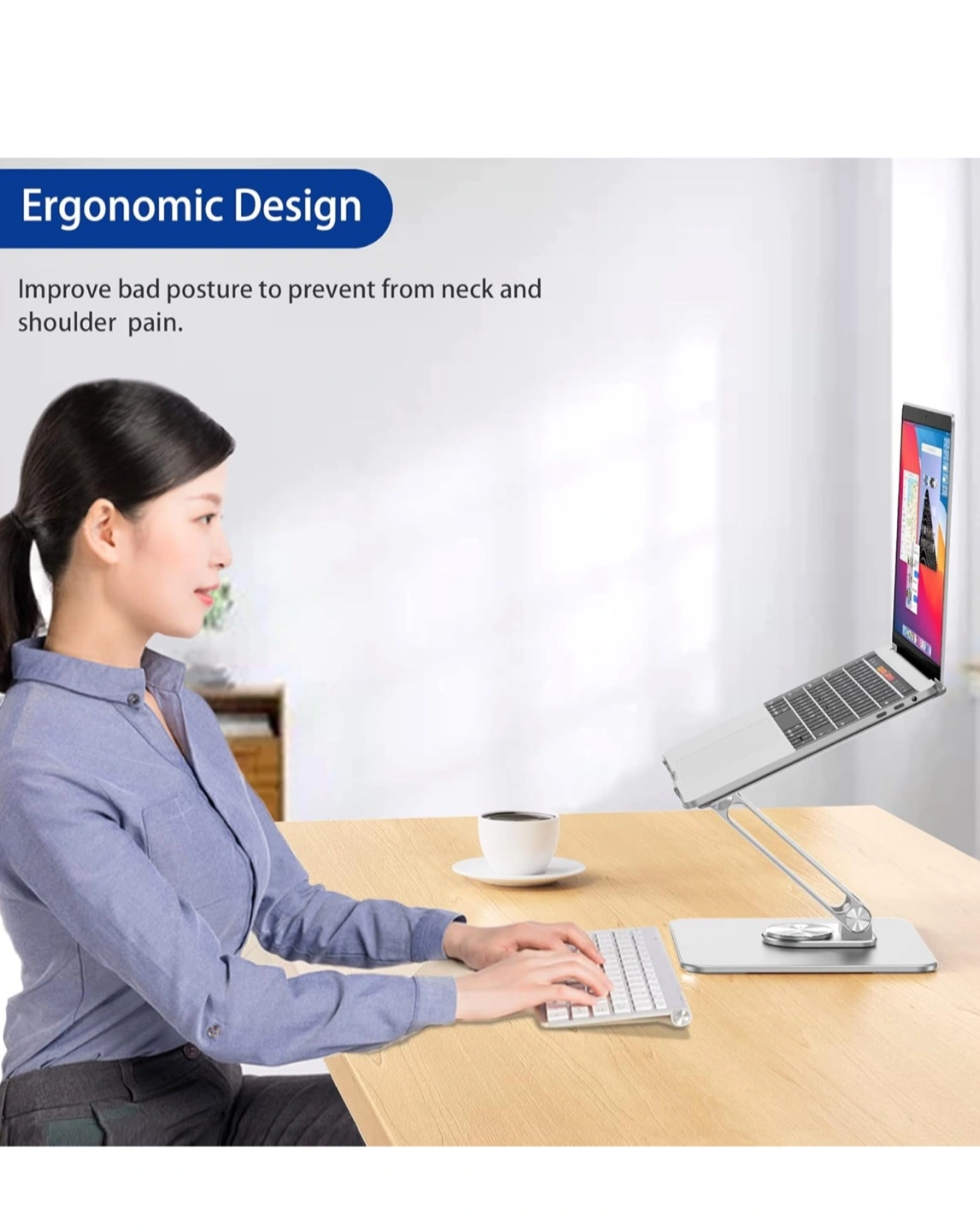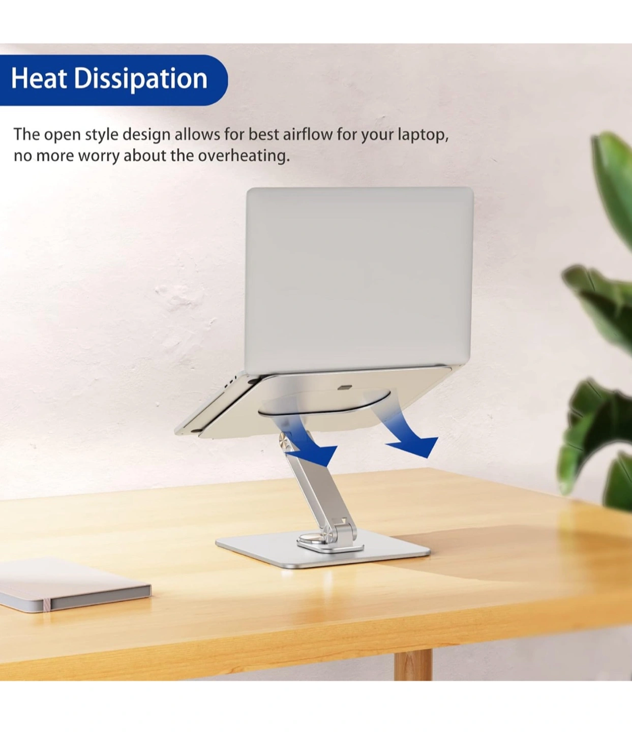 This adjustable laptop stand is designed to improve your posture and prevent neck and shoulder pain. It's compatible with laptops from 10 to 15.6 inches and can support up to 8.8 lbs. The open style design allows for best airflow for your laptop, so you don't have to worry about overheating