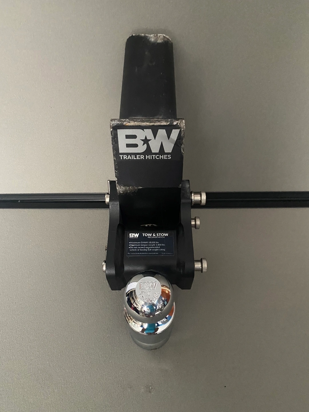 B&W Tow & Stow Adjustable Trailer Hitch 7” Drop Asking $300.00 Condition: Used 2 times (normal wear) Pickup Whitby Brock S N & Maple Information: B&W Trailer Hitches Tow & Stow Adjustable Trailer Hitch Ball Mount - Fits 2.5" Receiver, Dual Ball (2" x 2-5/16"), 7" Drop, 18,000 GTW ADJUSTABLE – The Tow & Stow Adjustable Ball Mount Trailer Hitch is adjustable in height for level towing. Simply pull the two stainless steel adjustment pins to raise or lower the hitch to the ideal position for your vehicle and trailer combination. Easily rotate the ball assembly to swap between ball sizes. STOWABLE & SECURE: Keep your hitch handy but out of the way. When you're not towing, stow the Tow & Stow Adjustable Ball Mount right where you'll need it next. Just rotate the hitch under the vehicle, replace the pins, and your Tow & Stow is tucked safely away and the adjustable arm of the hitch cannot be removed.
