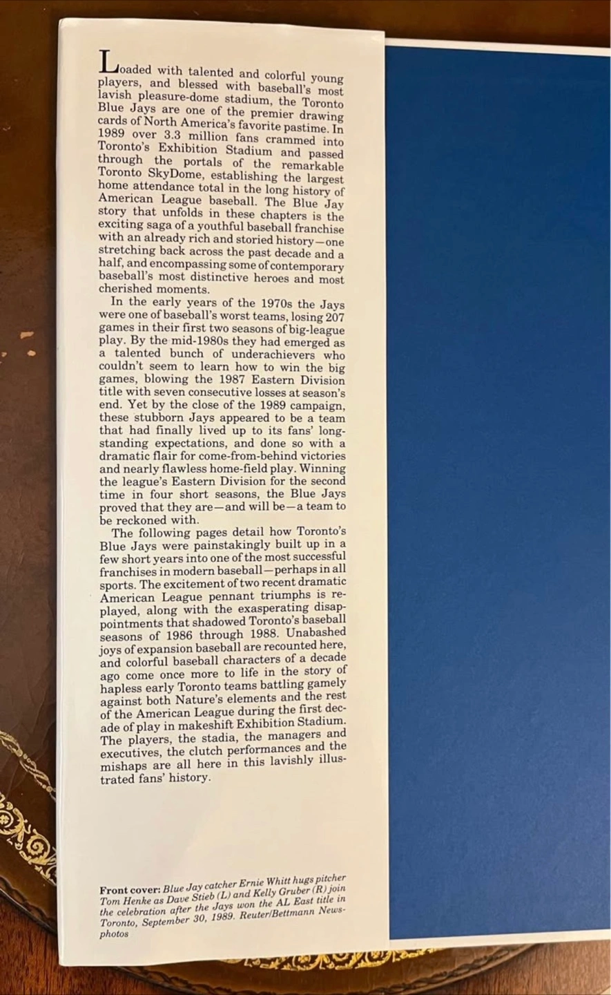 Selling a copy of "The Toronto Blue Jays" by Peter C. Bjarkman! It's a great read for any fan of the team or baseball in general. The book covers the history and highlights of the 1989 Toronto Blue Jays, with lots of photos!