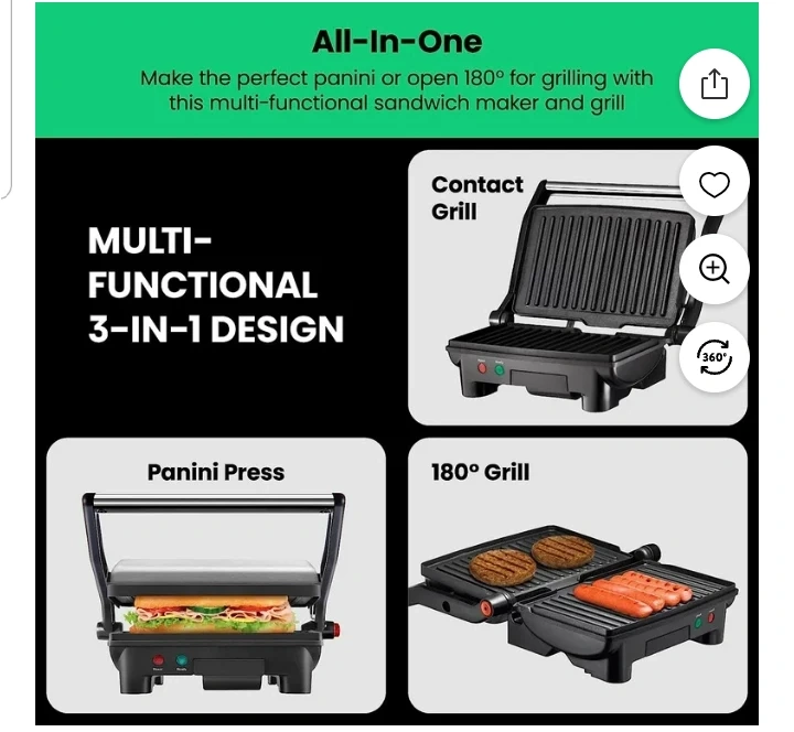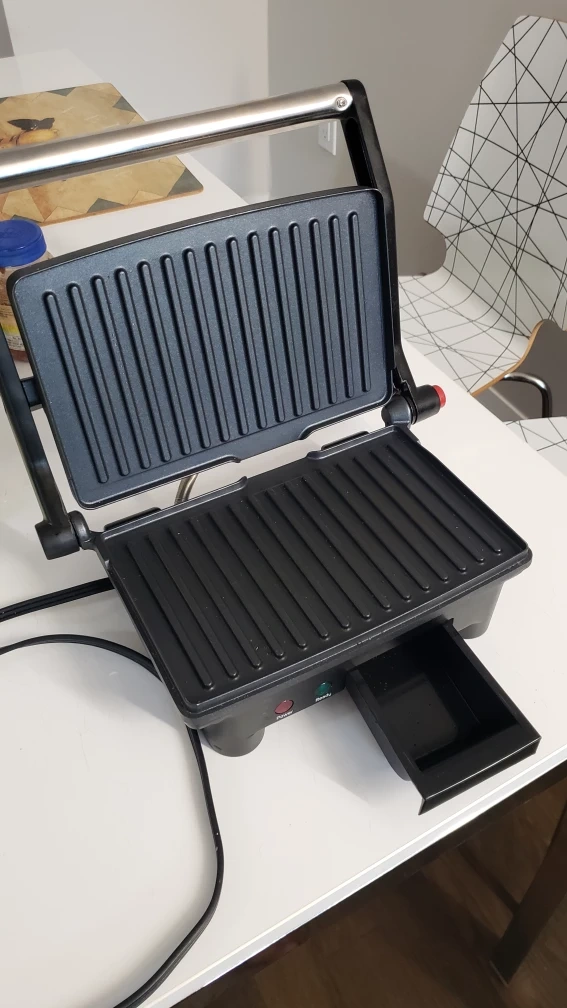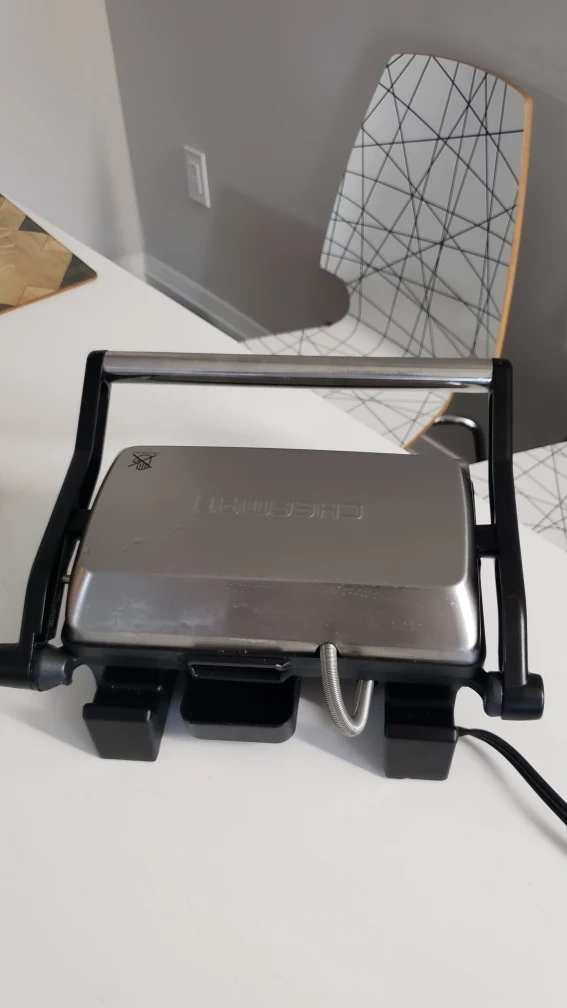 I'm selling a Chefman 3-in-1 Panini Press & Grill, perfect for making delicious sandwiches, chicken, burgers, steaks and more. It features dual-sided grilling plates to lock in that juicy flavour! It's a 2-Slice Non-Stick grill that opens flat and is made of stainless steel. Originally bought for $34.99 LIKE NEW!! HARDLY USED!! EXCELLENT WORKING CONDITION!! ONLY USED FOR VEGETARIAN ITEMS!! ABSOLUTE INTACT COATING!! More info available upon request