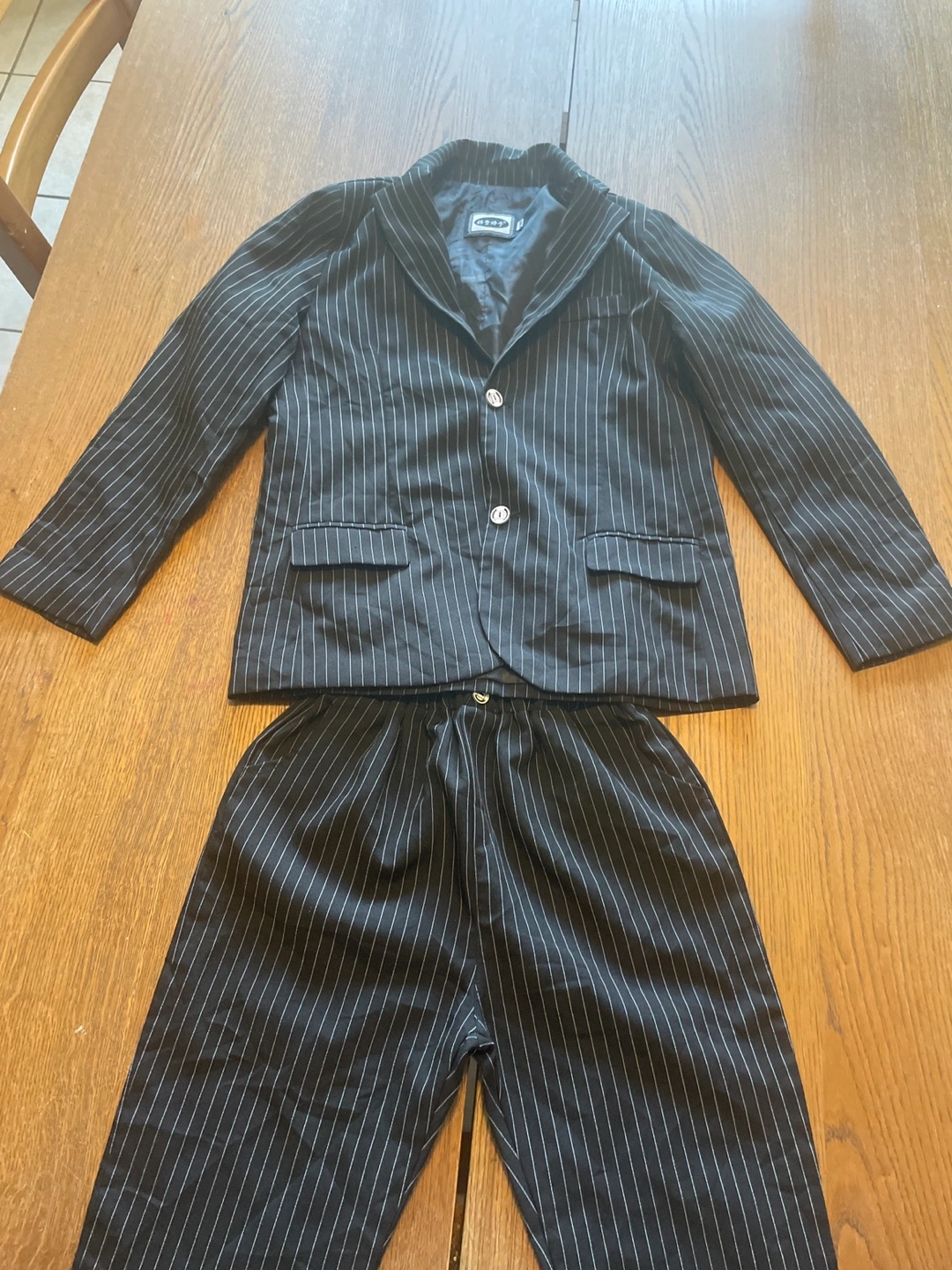 Selling a boys' black pinstripe suit, perfect for a special occasion! Includes the jacket, pants, vest, and a white dress shirt. The suit is in good condition and ready for a new home $50 for rentals or $75 for whole thing