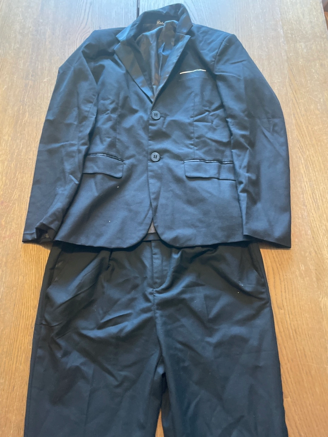 Selling a boys' black suit set. Includes the jacket, pants, vest, and a white dress shirt. Perfect for special occasions! $50 for rentals and $75 for purchase