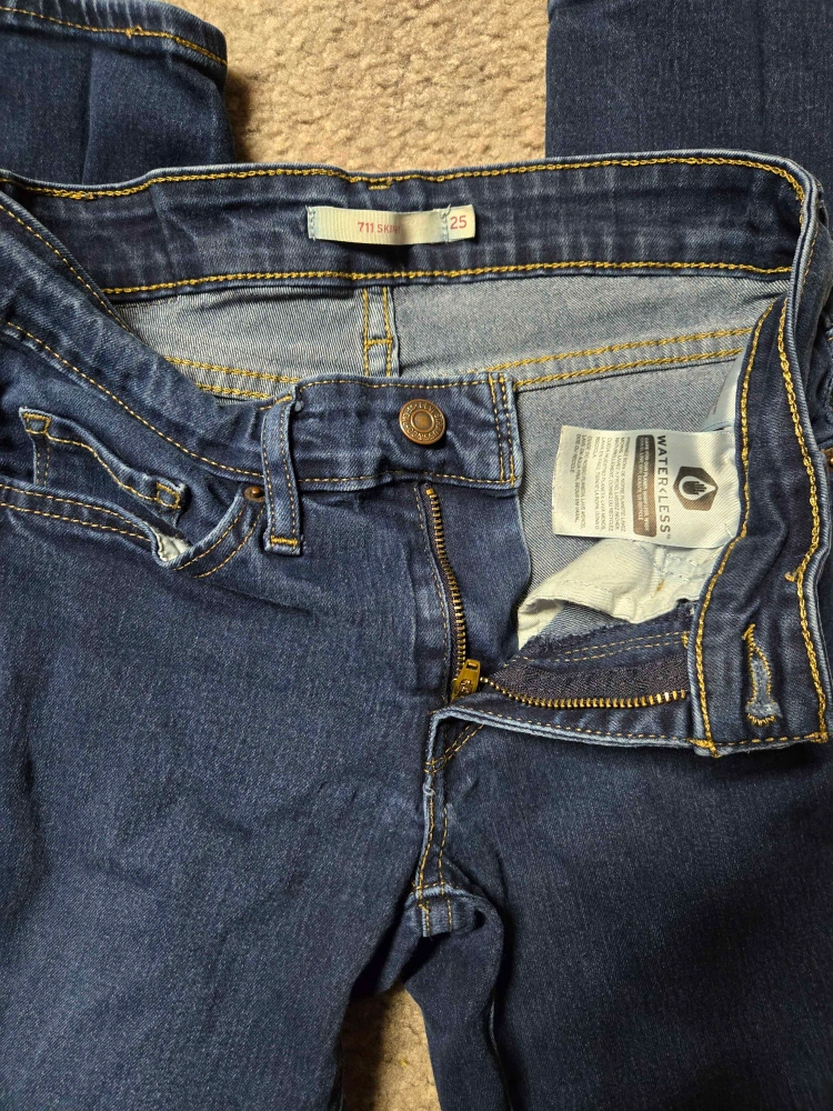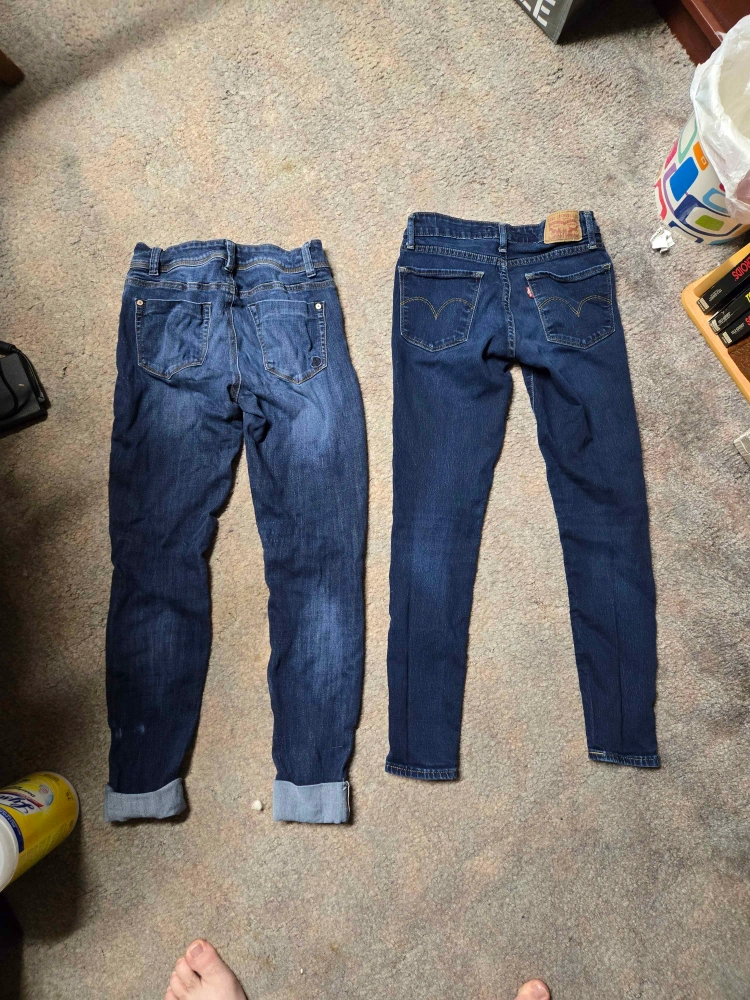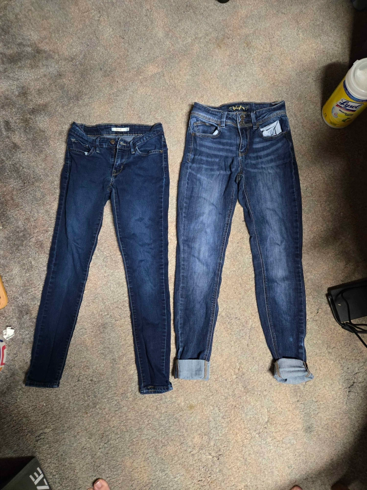 Levi's 711 is size 25 / 2-3. Length 28. Indigo Rein is size 26 / 3. Length 27. Indigo Rein is a US-only brand. Similar quality to Levi's. Not worn/washed out much as I outgrew them quickly. No stains. Also open to meeting somewhere closer to you, if applicable. Will sell each one individually for $12. Open to trading for jeans size 34-36 / 5-6, cute/unique non-jean shorts, skater skirts, etc. Chat me with offers!