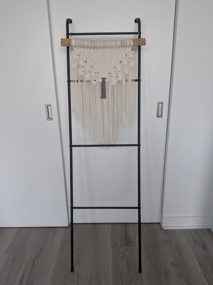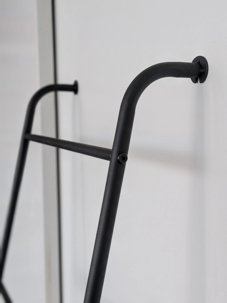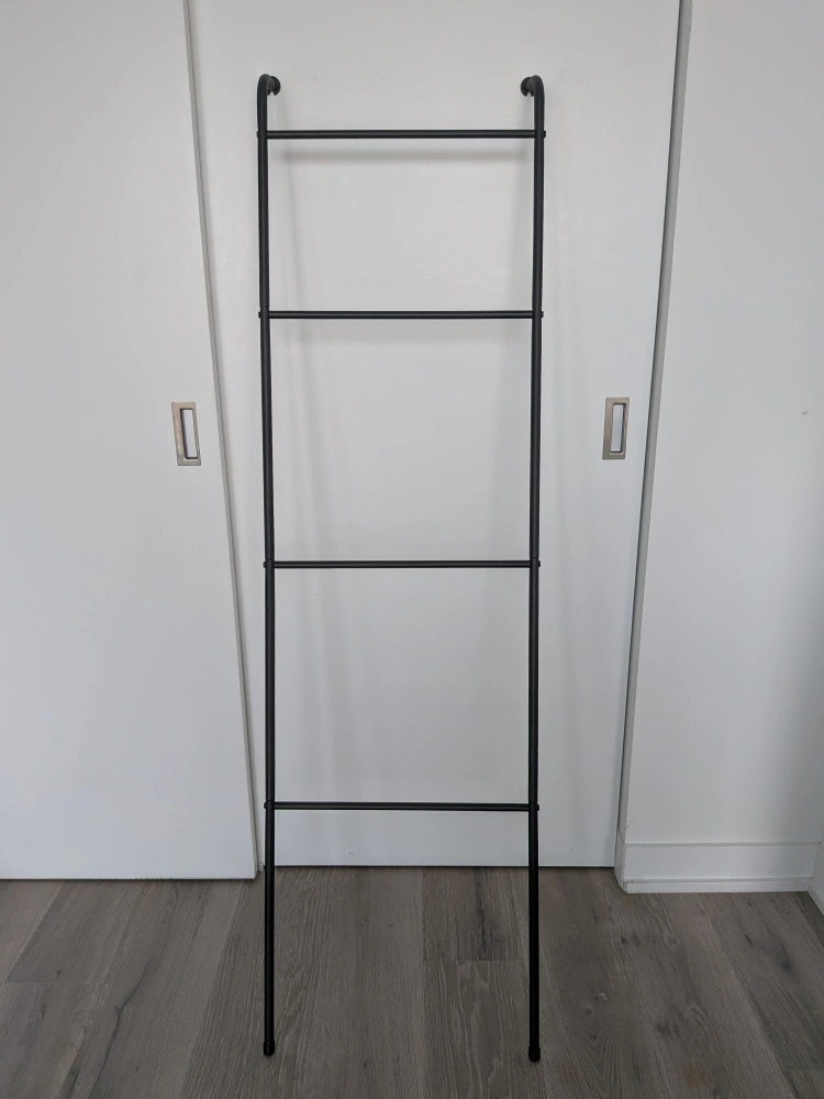 Looking to add a unique touch to your space? This ladder shelf is perfect! It features a sturdy black metal frame. It's great for displaying plants, towels, or other decorative items. A stylish and functional piece!
