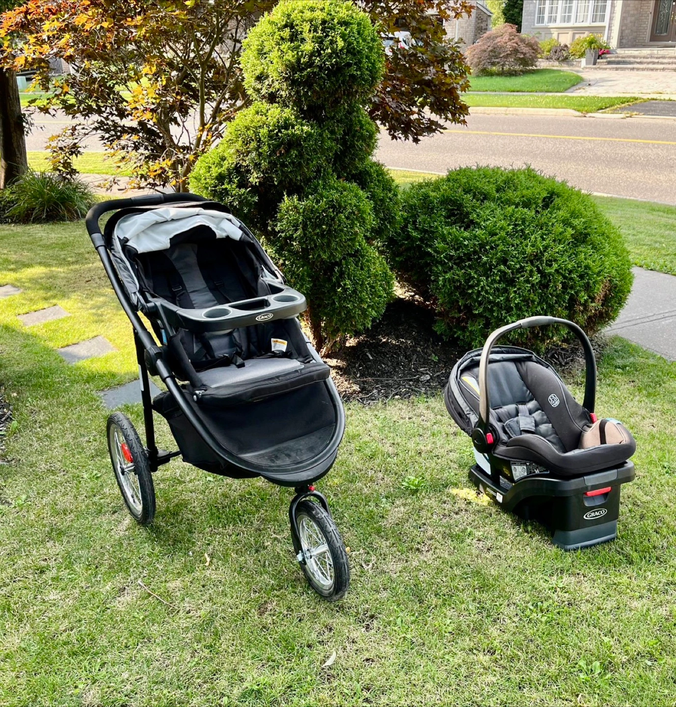 Graco JGR 2.0 stroller – like new! Gently used, well-maintained, and in excellent condition. Built for all seasons and all terrains, this stroller handles snow, gravel, and uneven paths with ease. Smooth ride, quick fold, and comfortable for your little one. From a clean, smoke-free, pet-free home.” The stroller is easy to maneuver and provides a smooth ride. The car seat is like new and provides excellent safety for your little one. Many other baby stuff available-if interested send a message. New one is $850.00