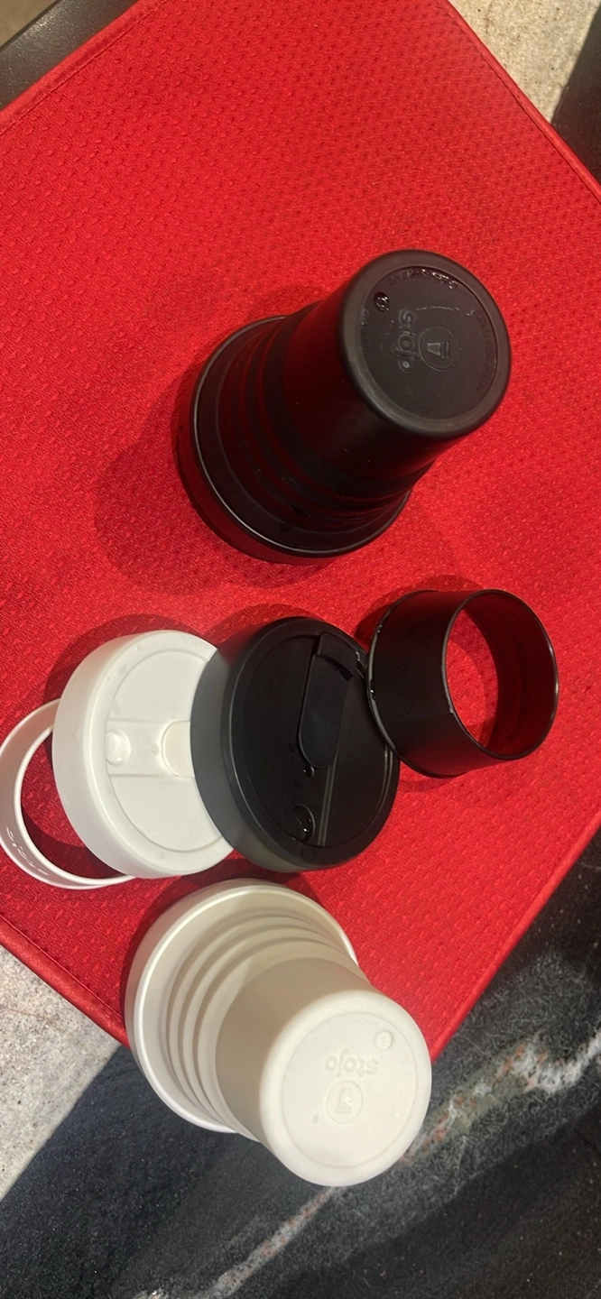 Selling a couple of Stojo collapsible coffee cups! One is black and the other is white. They're super handy for travel or just keeping in your bag for when you need a coffee on the go. They collapse down small, so they're easy to store and carry around. Perfect for anyone who likes to be prepared! Keele and Bloor $10 each or $15 for both