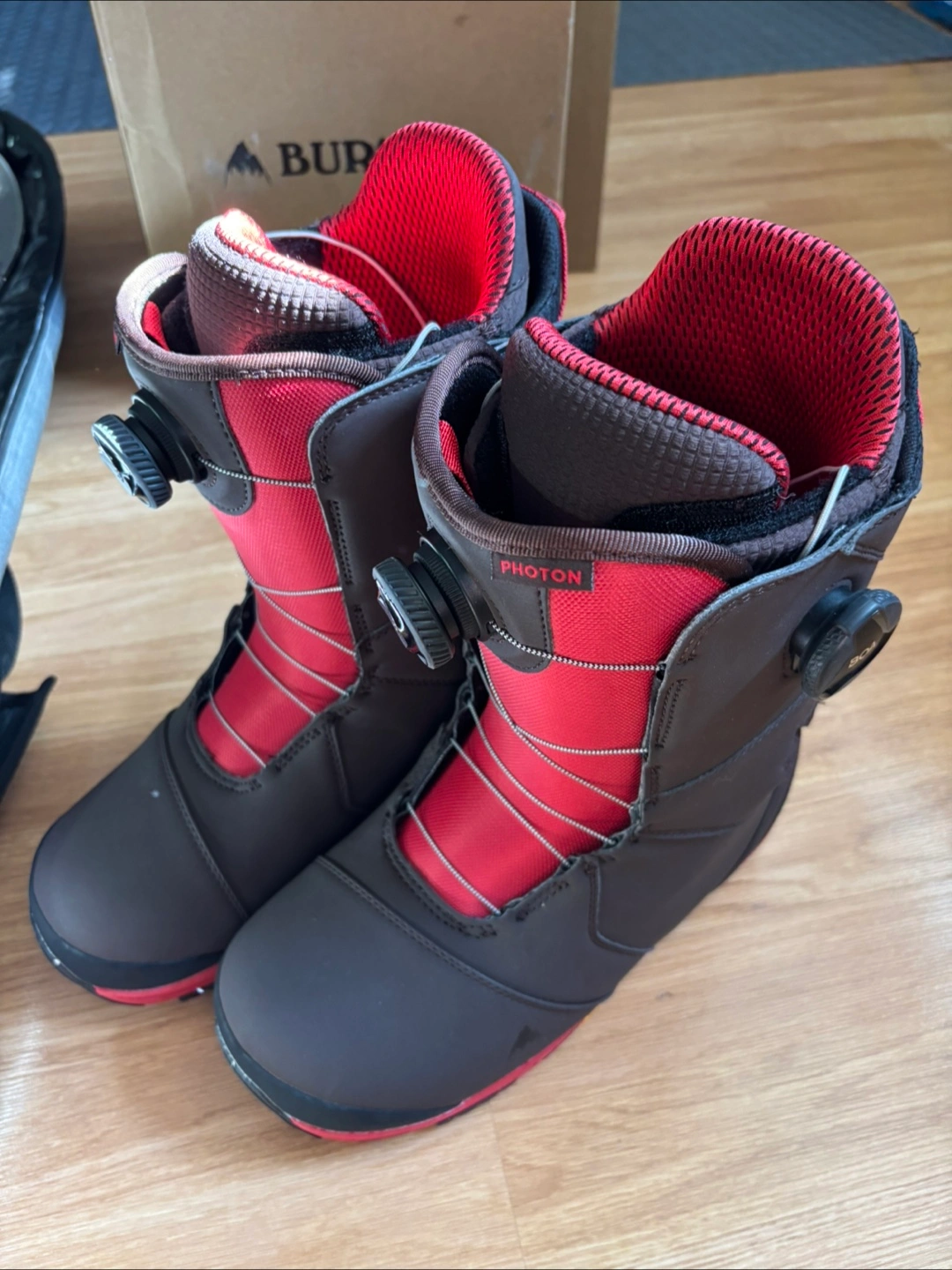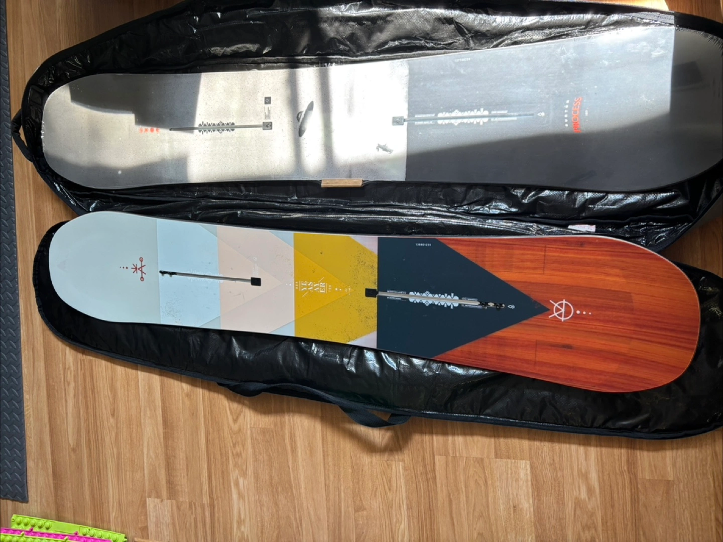 Hi, Never used snowboard Flying v process 61 inches - the board on the right side only Binders cartel est Boots photon 9.5 Gig bag Cheers!
