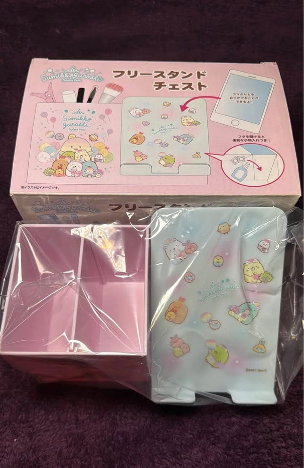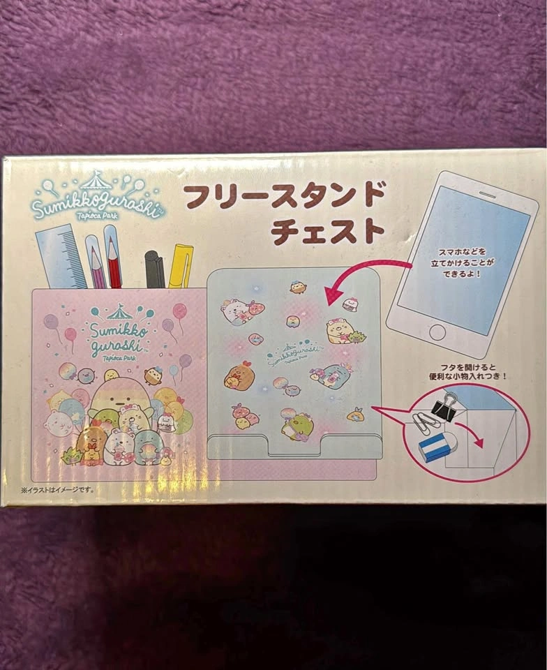 Brighten up your workspace with this adorable Sumikko Gurashi Tapioca Park pen stand and phone holder! This brand new set features a cute design, perfect for organizing your desk while adding a touch of whimsy. The stand is designed to hold pens, pencils, and even your smartphone, making it a practical and charming addition to any Sumikko Gurashi collection. * Brand new in box * Officially licensed Sumikko Gurashi product * Features a pen stand and phone holder * Cute Tapioca Park design