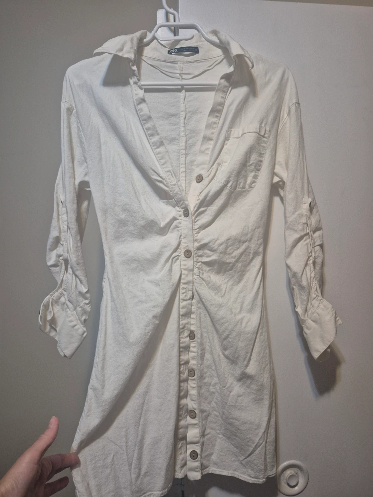 Selling a Zara white dress in size small. It's in great condition and made in Morocco. Perfect for a casual day out or dressed up for an evening!