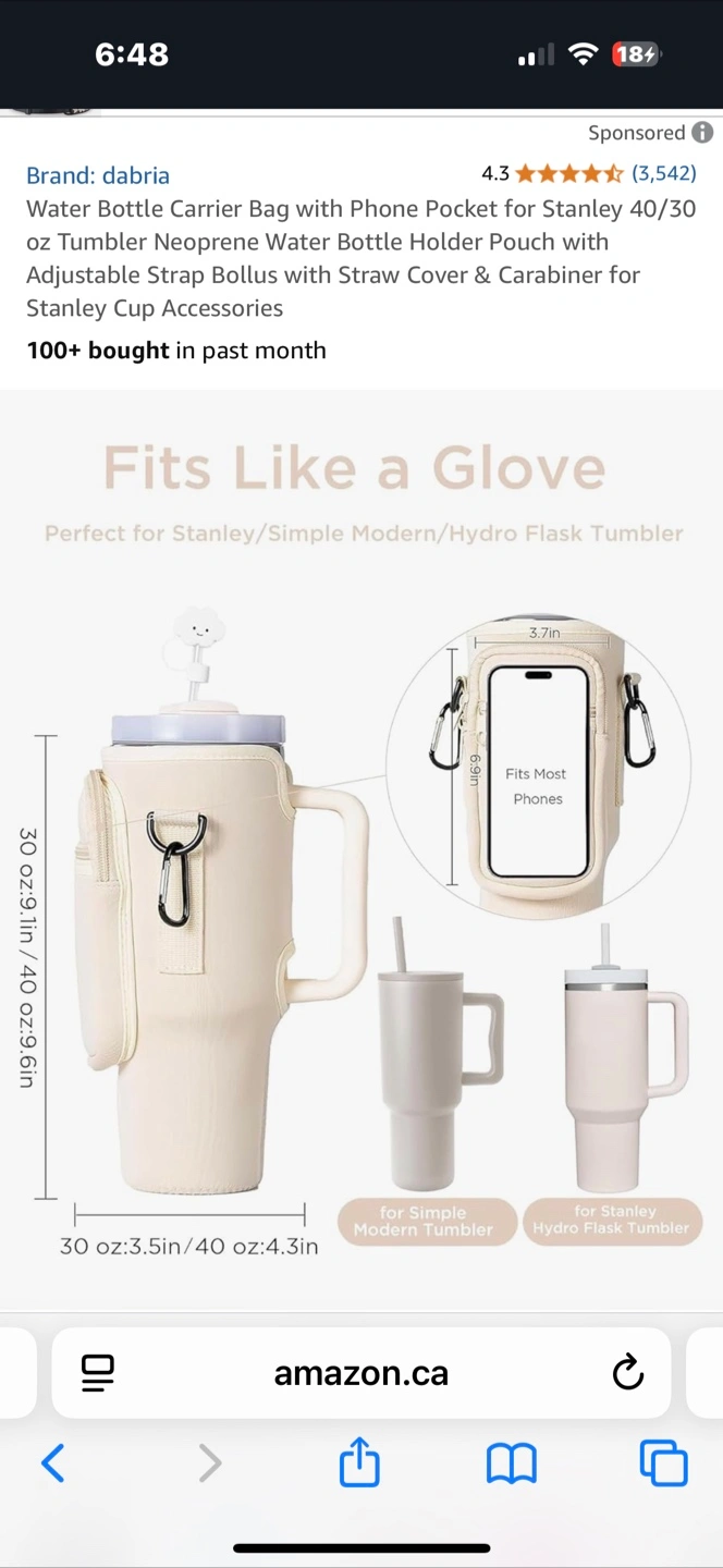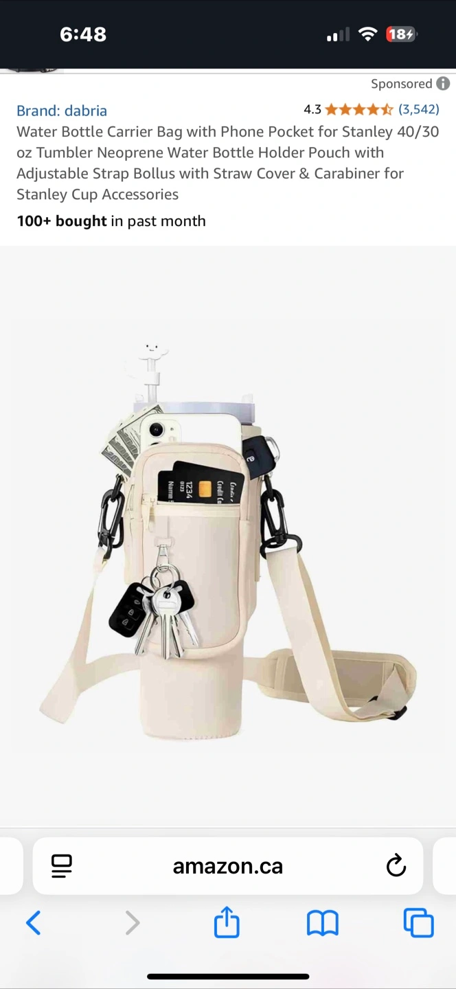 Water Bottle Carrier Bag! It's designed with a phone pocket suitable for 40/30 oz tumblers, crafted from neoprene, and includes an adjustable strap, straw cover, and carabiner. The box is included! Used once for a charity walk One zipper fell off but pocket is still useful Extra pieces included and very used (bottle too cover, straw cover , extra clips) Pick up NE Marlborough See my other ads