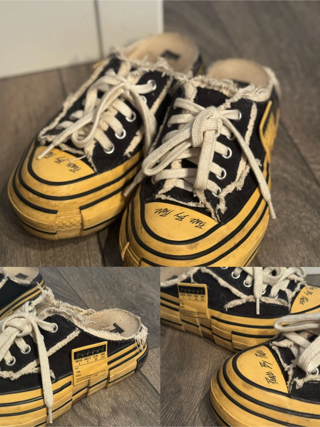 Selling a pair of Maison Mihara Yasuhiro canvas sneakers. These are a size 5 (men's) / 35 (women's) / 230 mm. They feature a unique design with canvas material and a distinctive style. Perfect for adding a touch of individuality to your wardrobe!