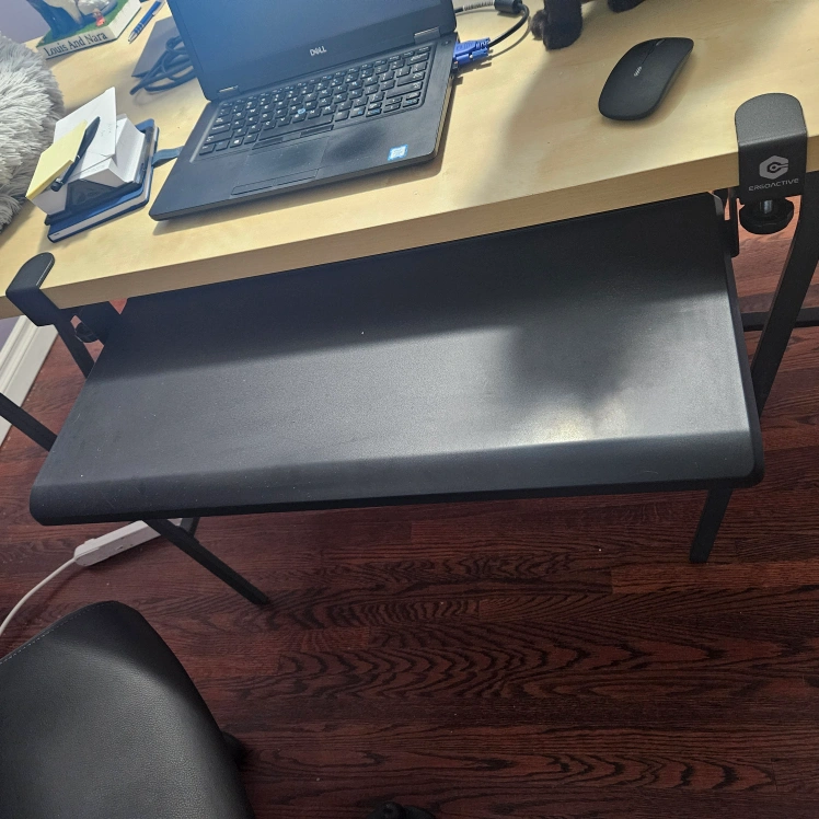 Selling an Ergoactive under-desk keyboard tray. It's in great shape and ready to help you optimize your workspace. This tray easily clamps onto your desk, providing a convenient and ergonomic spot for your keyboard and mouse. It helps free up desk space and promotes better posture while you work or game. It's a simple addition that can make a big difference in your daily comfort! size 27 x 12 inches. $25 for both the keyboard and the tray