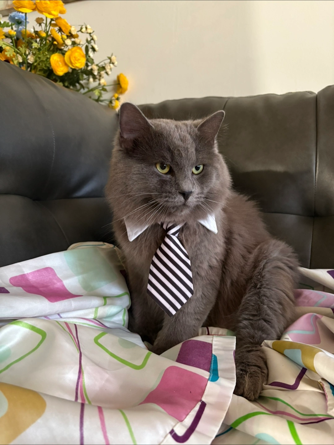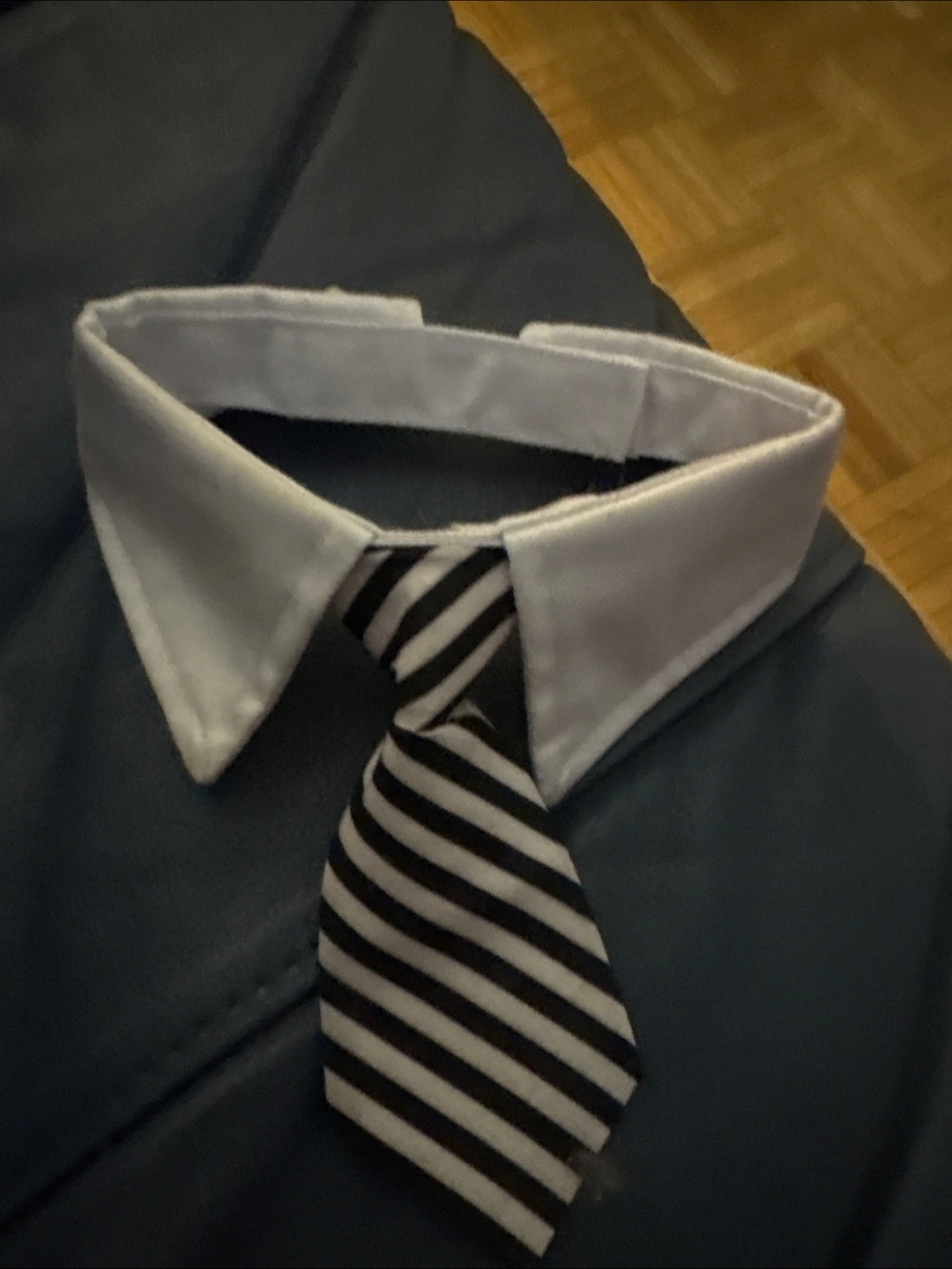 A super cute cat collar with an attached tie! The tie features a classic black and white stripe design. It's purr-fect for dressing up your furry friend for special occasions or just for fun Only available for pick up.
