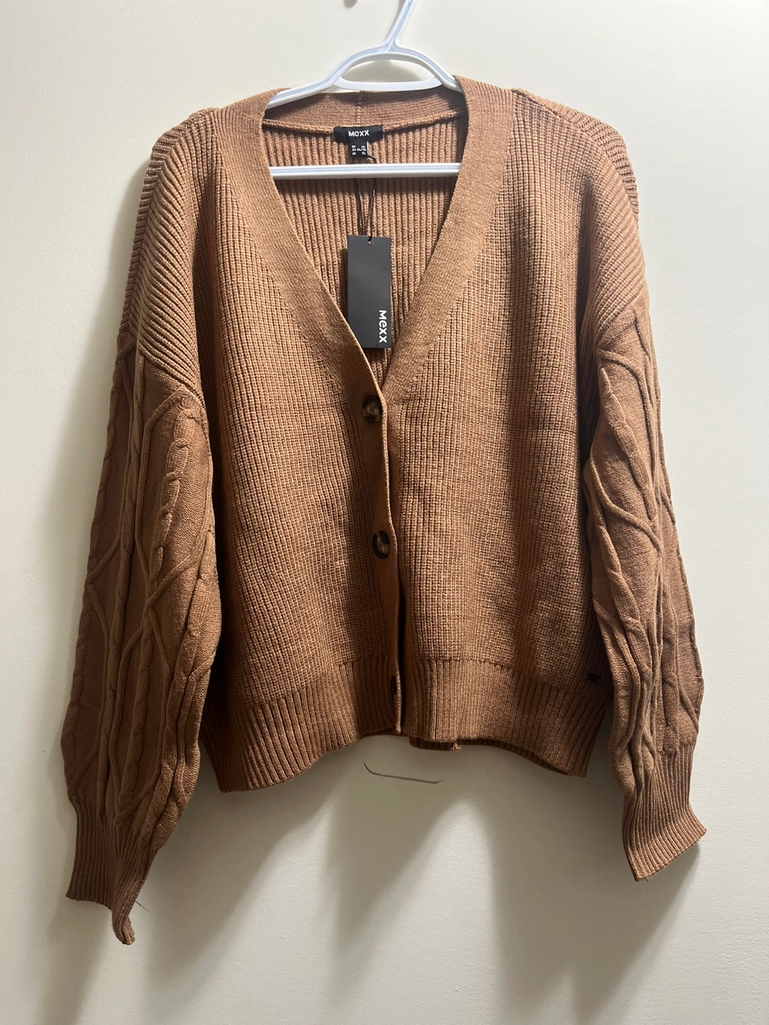 Brand new Pickup Brampton or downtown Toronto -Content: 50% viscose, 39% polyester, 21% nylon -V-neckline -Button opening -Cable knit sleeves -Ribbed neckline, placket, cuffs, and hem -Soft feel Bin C —NA10-38—