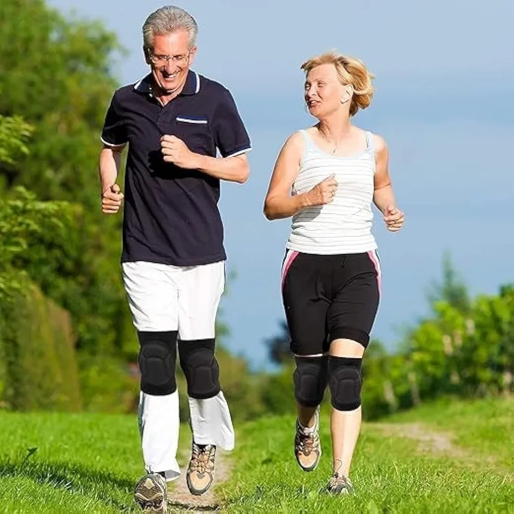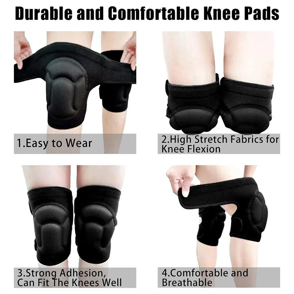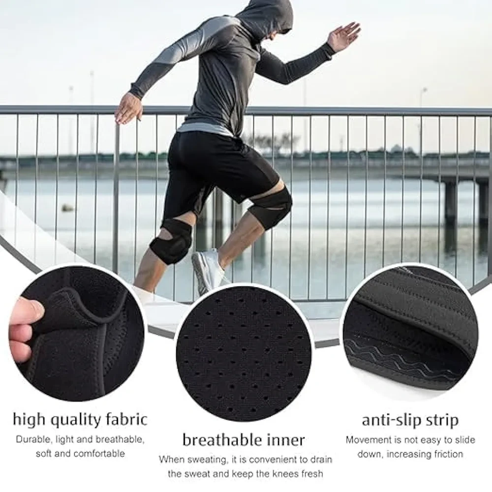 These knee pads are made with high quality fabric, designed to be durable, light, and breathable. The inner lining is breathable to keep your knees fresh even when sweating. They feature an anti-slip strip to prevent sliding, and a thickened sponge gasket for cushioning and shock absorption. The fabric is high stretch and includes anti-slip latex.