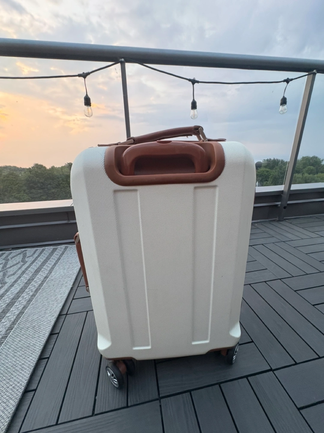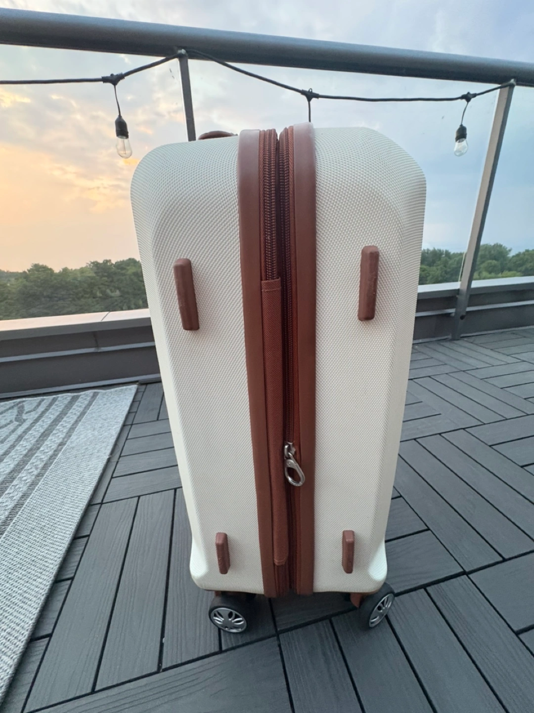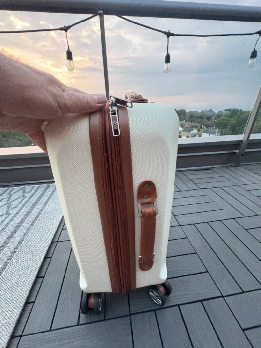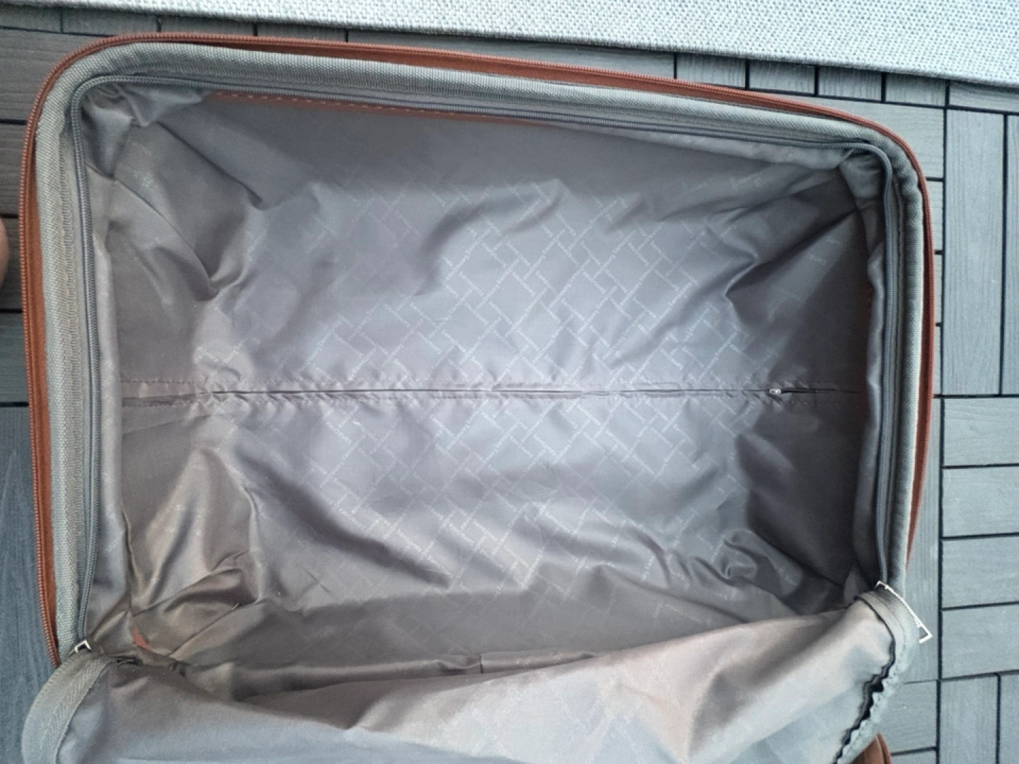 Selling a Samsonite carry-on suitcase. It's in great shape and ready for your next trip! The colour is a cream with brown accents. This suitcase features a stylish design and durable construction.