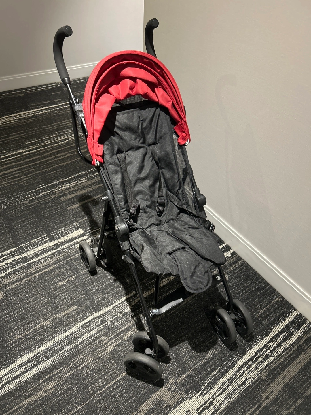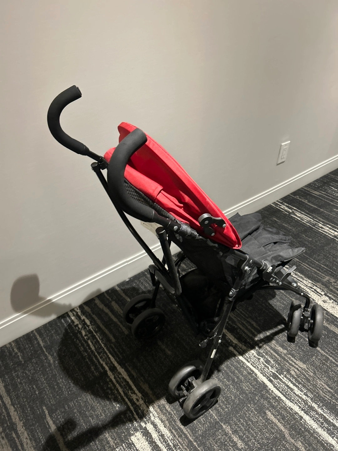 Selling a red and black stroller. It's in great condition and ready for your little one's adventures! The stroller is lightweight and easy to maneuver, making it perfect for walks around the neighbourhood or trips to the park