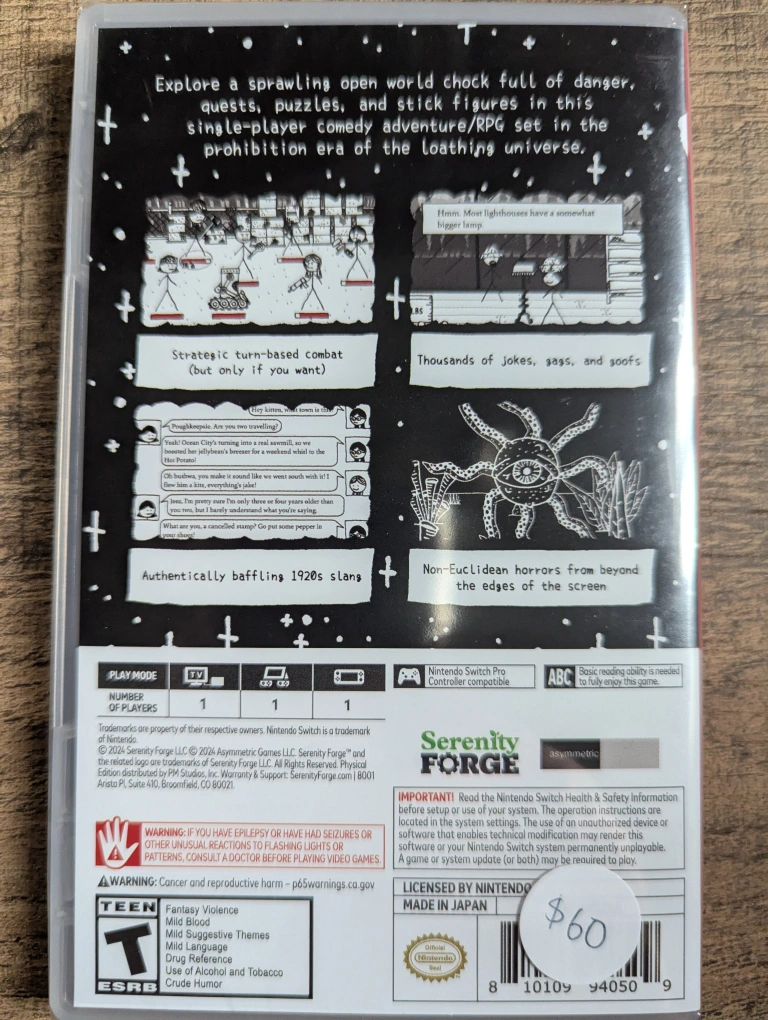Nintendo Switch Shadows Over Loathing for sale. Brand new factory sealed. Selling for $60. pick ups only