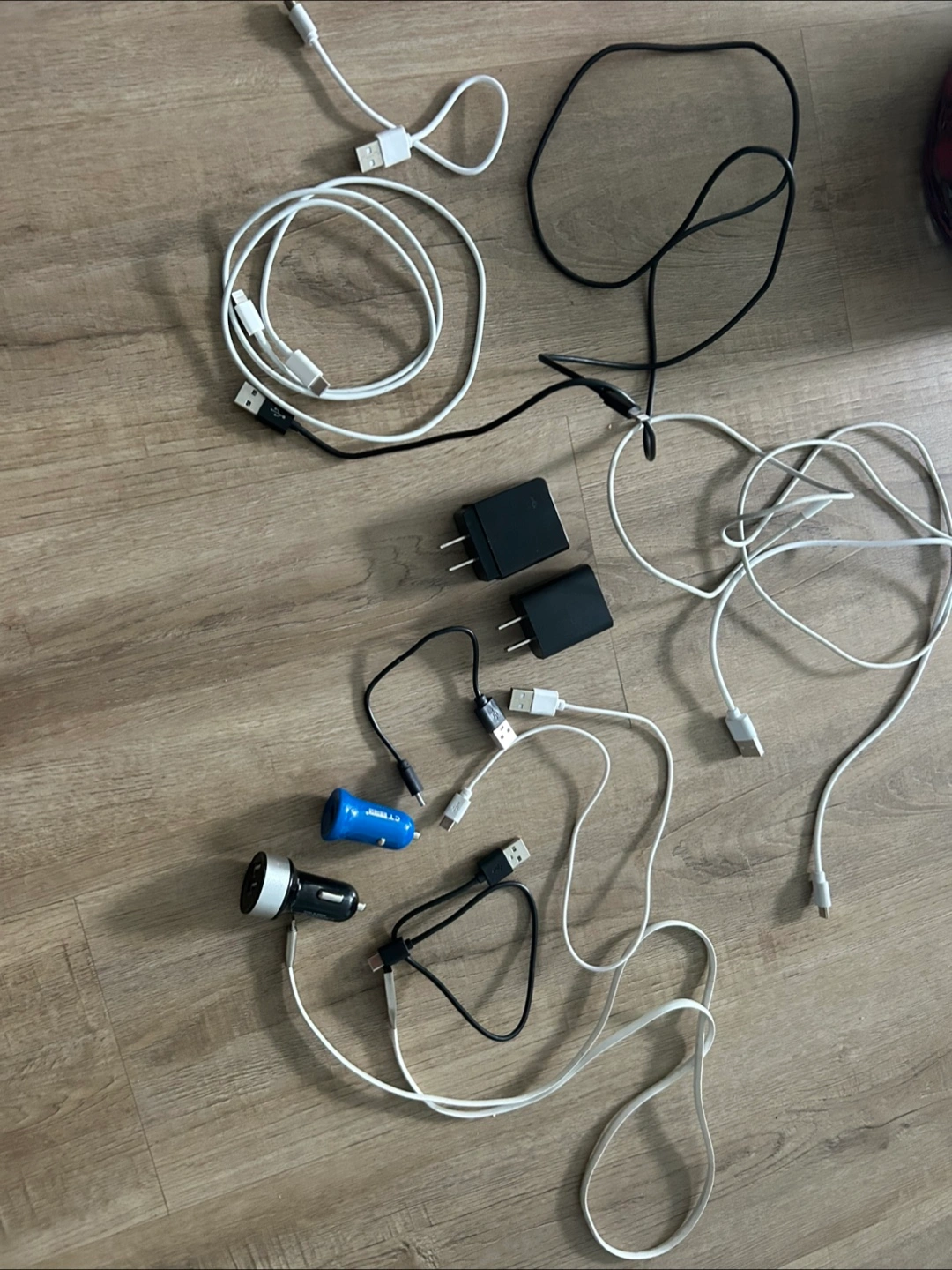 Selling a variety of phone chargers and adapters. Includes USB, USB-C, and car chargers. Great for spares or replacements!