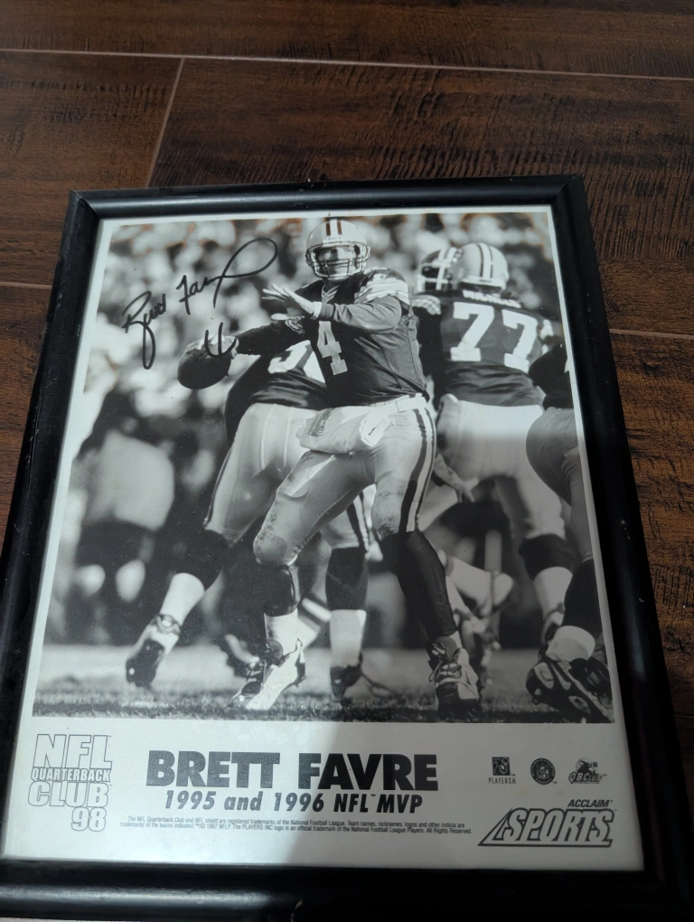 Selling a framed print featuring Brett Favre from the NFL Quarterback Club 98. It commemorates his 1995 and 1996 NFL MVP awards. A great piece for any football fan!