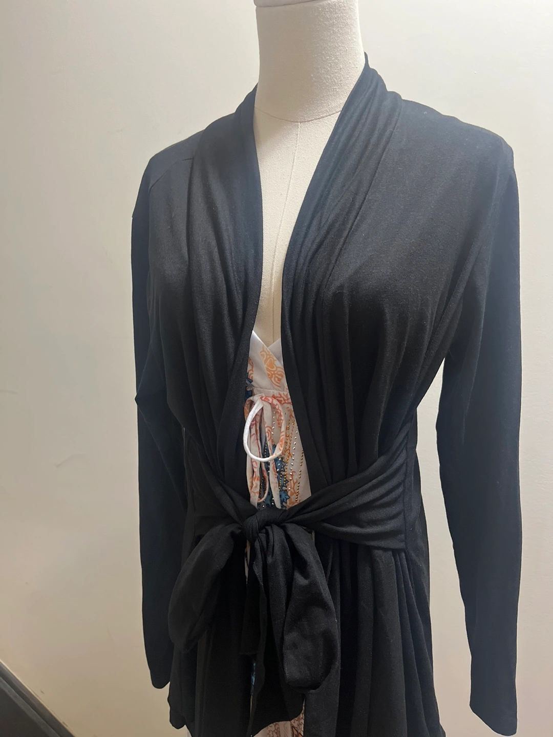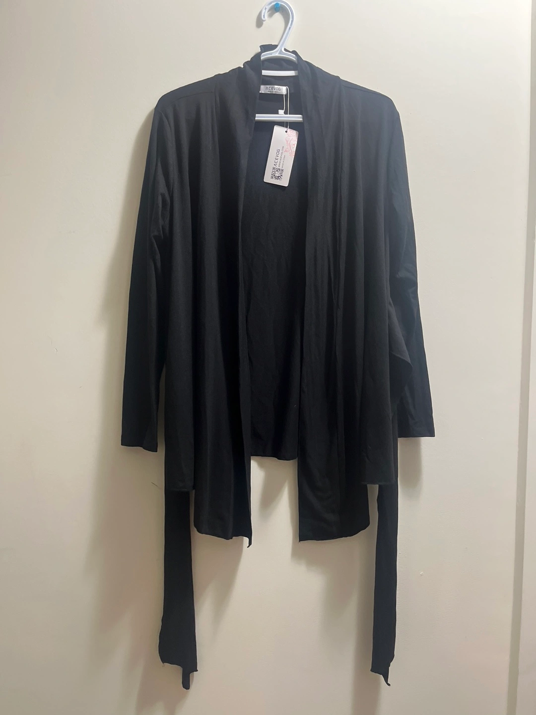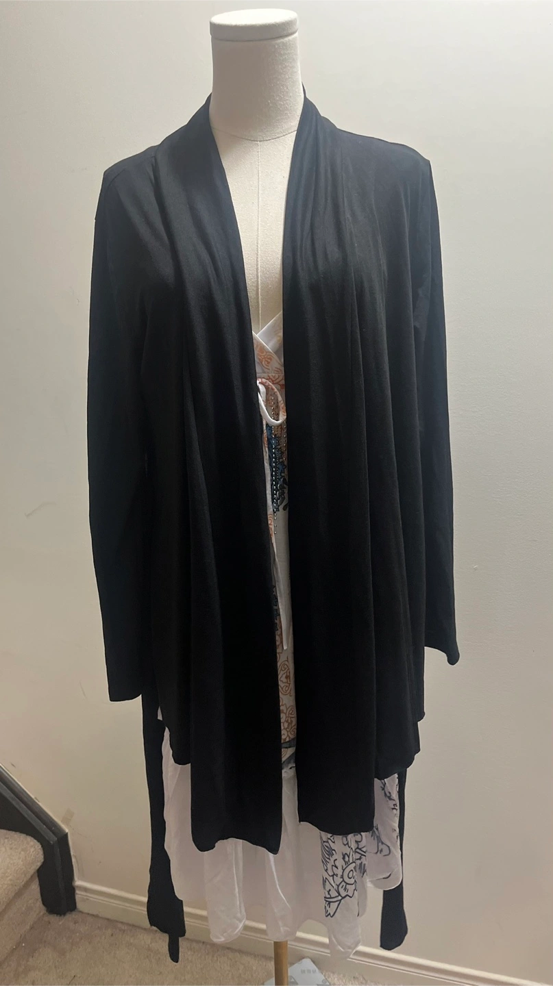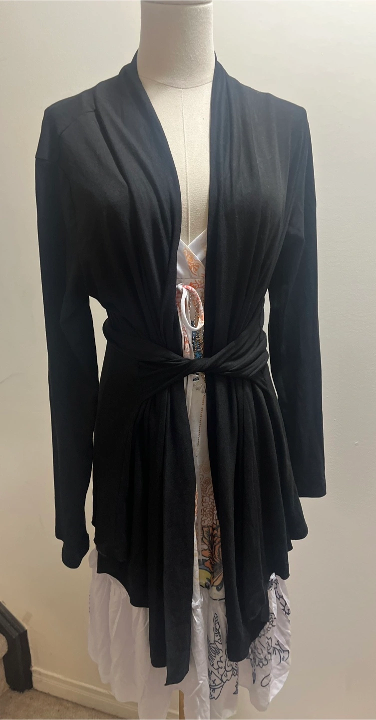 Brand new with tags Pickup Brampton or downtown Toronto Model to understand the style The belt can be tied in different ways, front or back, you style it!! Chic black cardigan by Acevog. Ideal for any occasion. Approximate measurements: PTP 25” Length of the front 32” Length of the back 26” —Bin C—