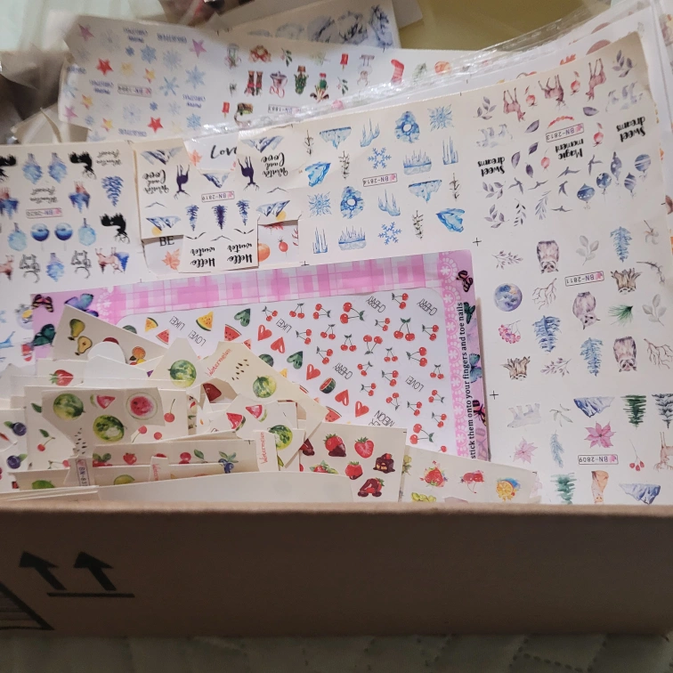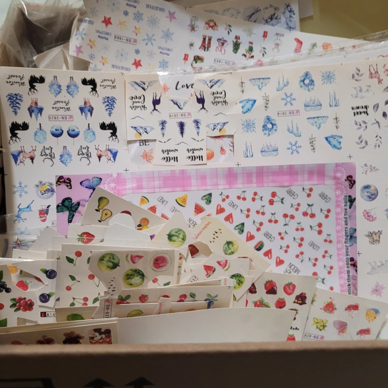 I'm selling water nail art decals There are many different designs including winter, fruit, and floral themes