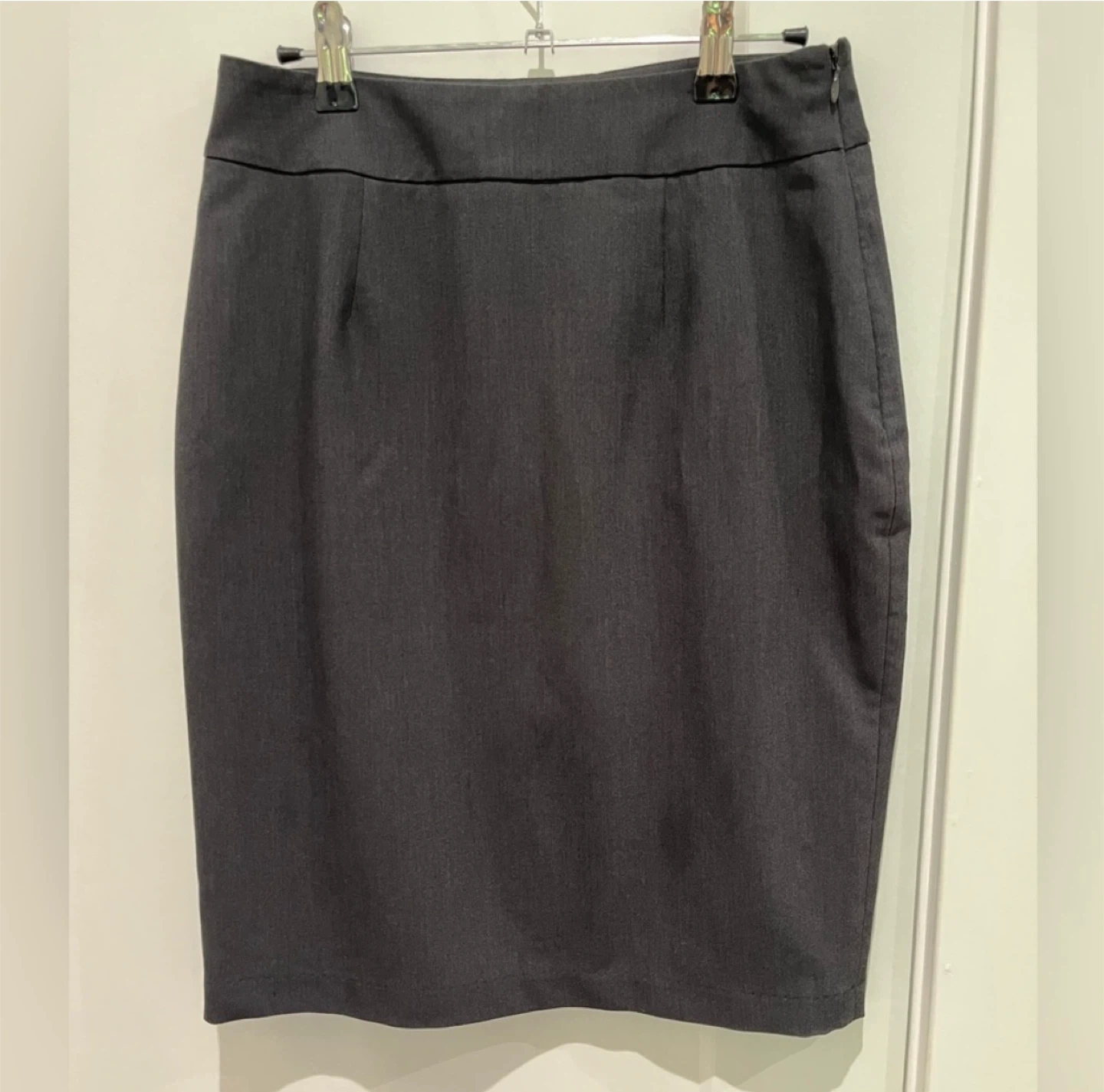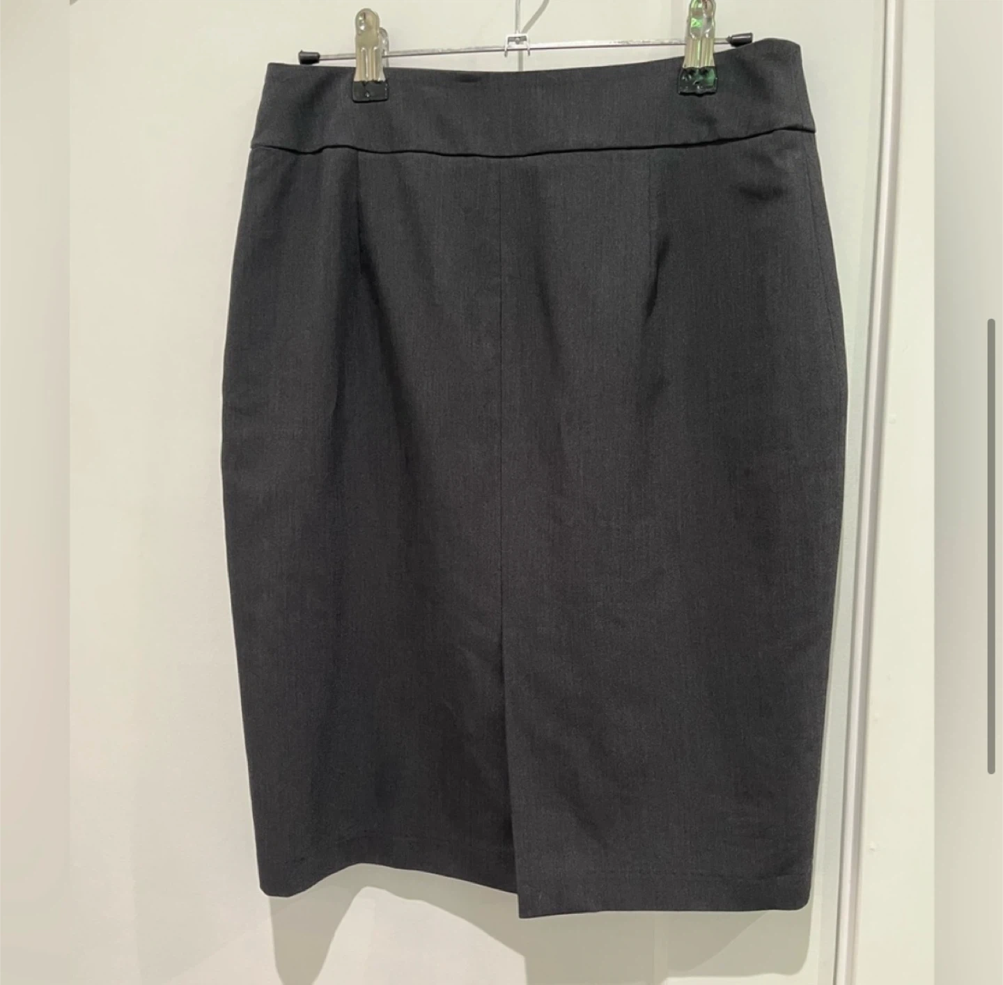 Alfred Sung Grey Pencil Skirt High waisted & Knee Length Zipper and button on left side Used - LIKE NEW Size: 2 Split in back centre of the dress - 7β Waist - 28β Hip - 36β Length - 21 3/4 β Smoke Free Home π