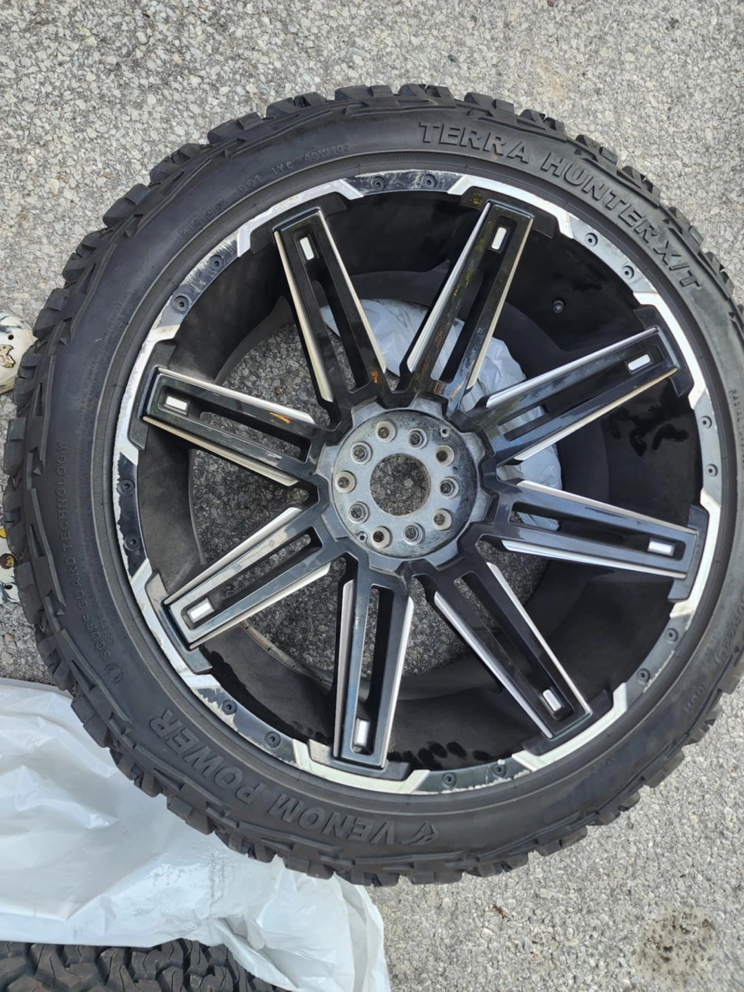 Selling a Venom Power Terra Hunter X/T tire. The size is 33X12.50R22LT. This tire is ready for your jeep wrangler bolt 5x127mm