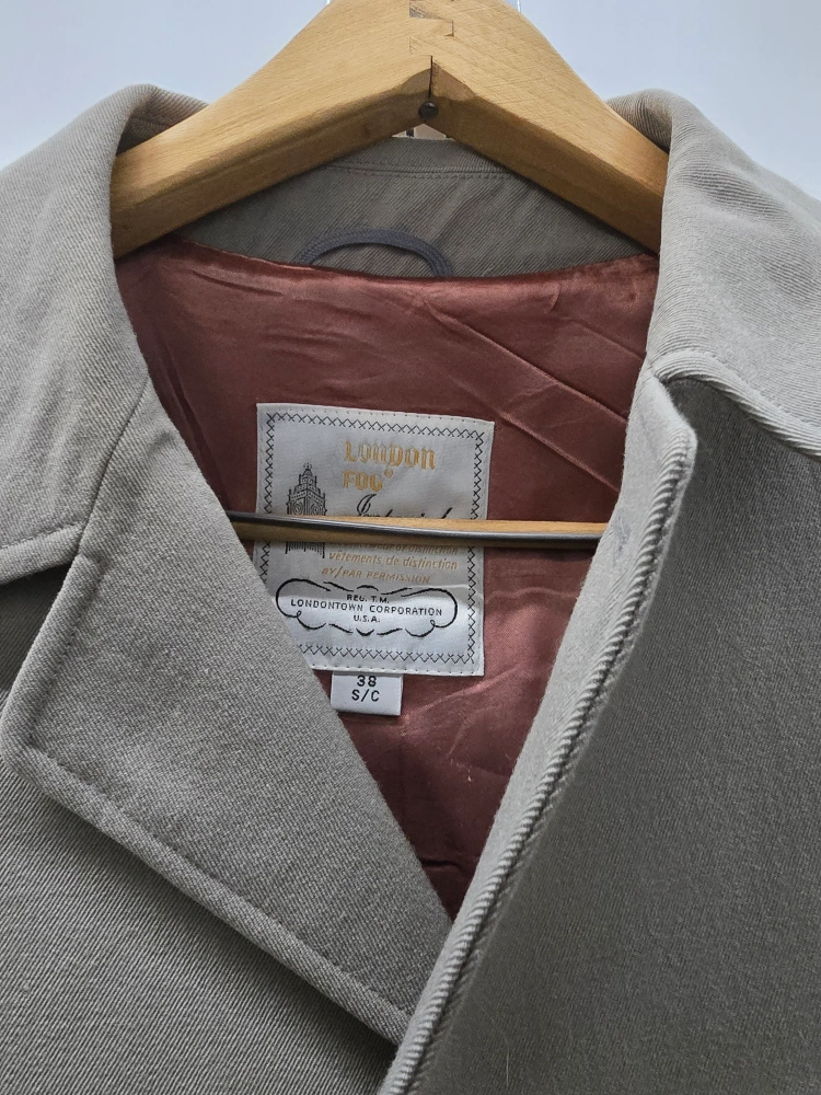 Here's a classic London Fog trench coat! It's a size 38 S/C. Perfect for those cooler days and evenings.