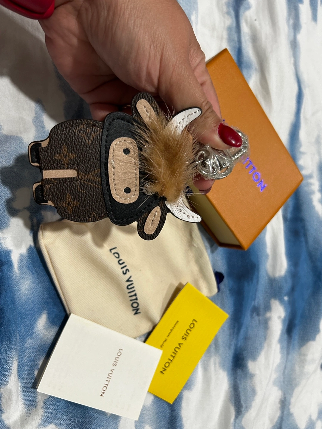 Selling a Louis Vuitton Vivienne bag charm and key holder. It comes with box and dust bag. This cute bag charm is perfect for adding a touch of luxury to your purse or keys!