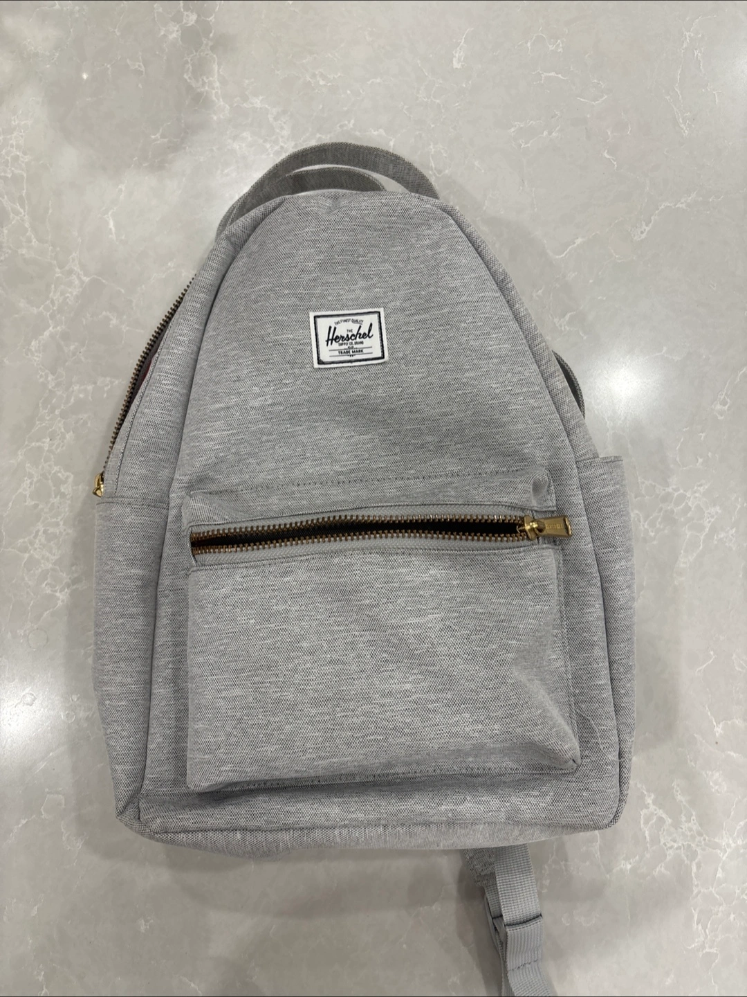 Selling a Herschel Nova Sprout Diaper Backpack in a lovely grey colour! It's in great condition and ready for a new home. Perfect for parents on the go, it combines style and functionality seamlessly. The interior has a red and white striped lining.
