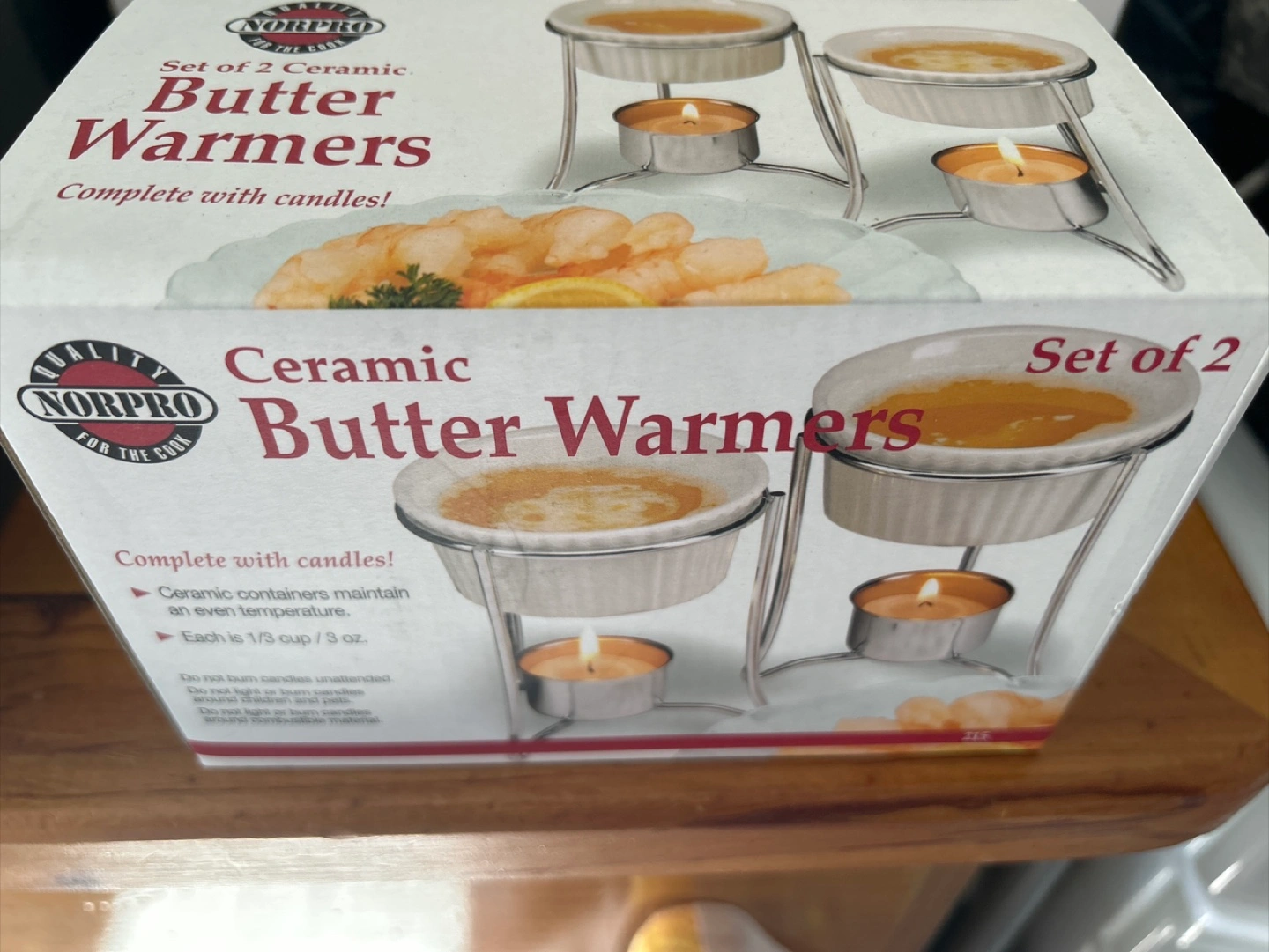 Keep your butter warm and ready to enjoy with this set of two ceramic butter warmers from Norpro! Each warmer comes complete with candles, so you can start using them right away. The ceramic containers help maintain an even temperature, and each holds 1/3 cup or 3 oz of butter